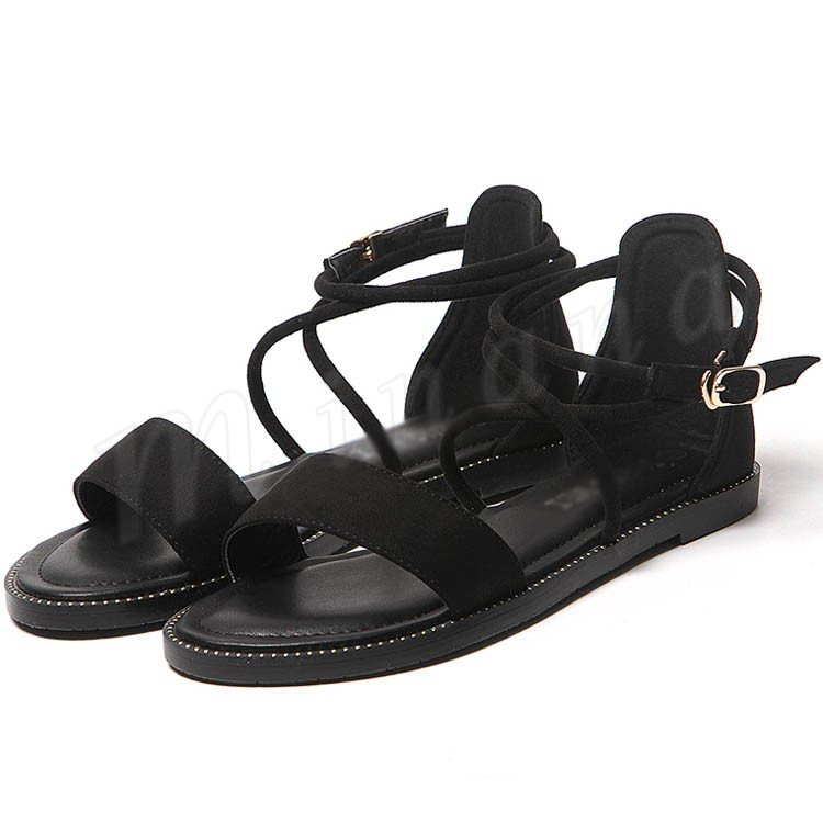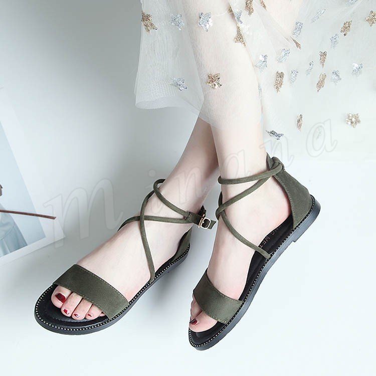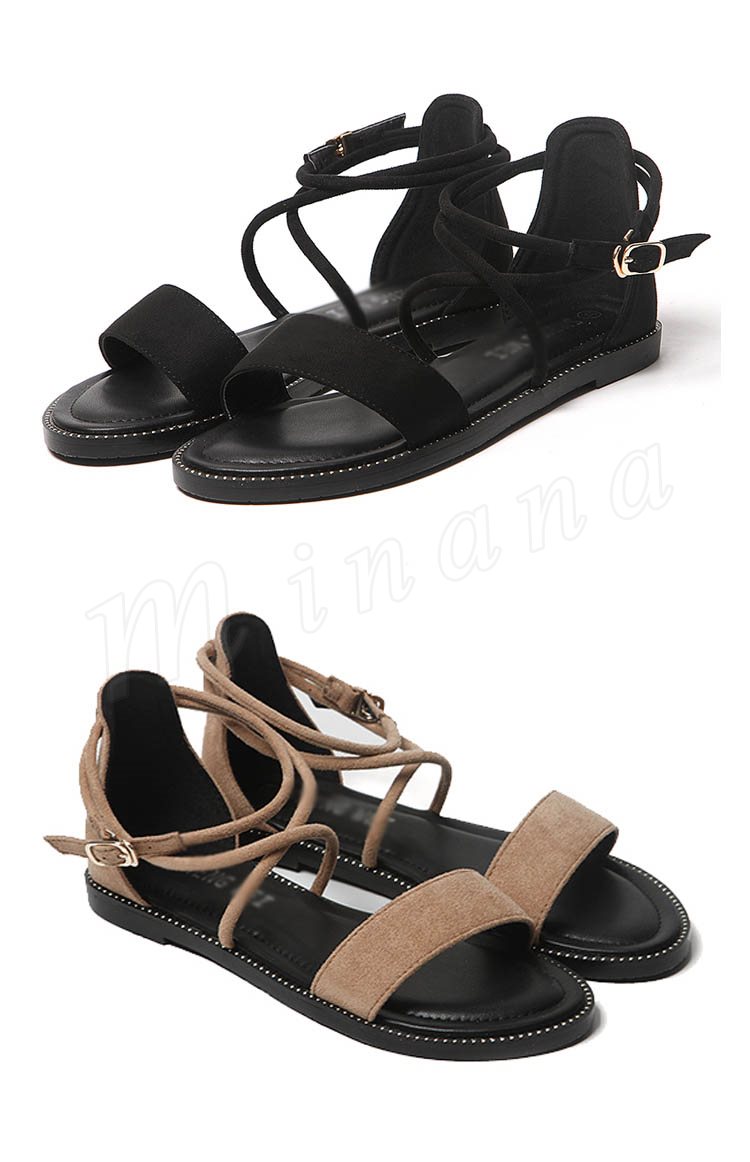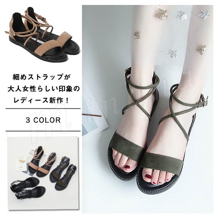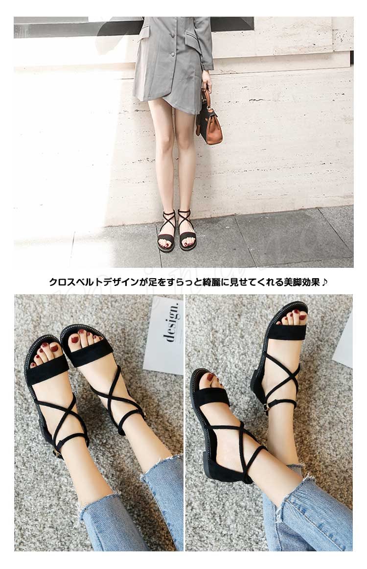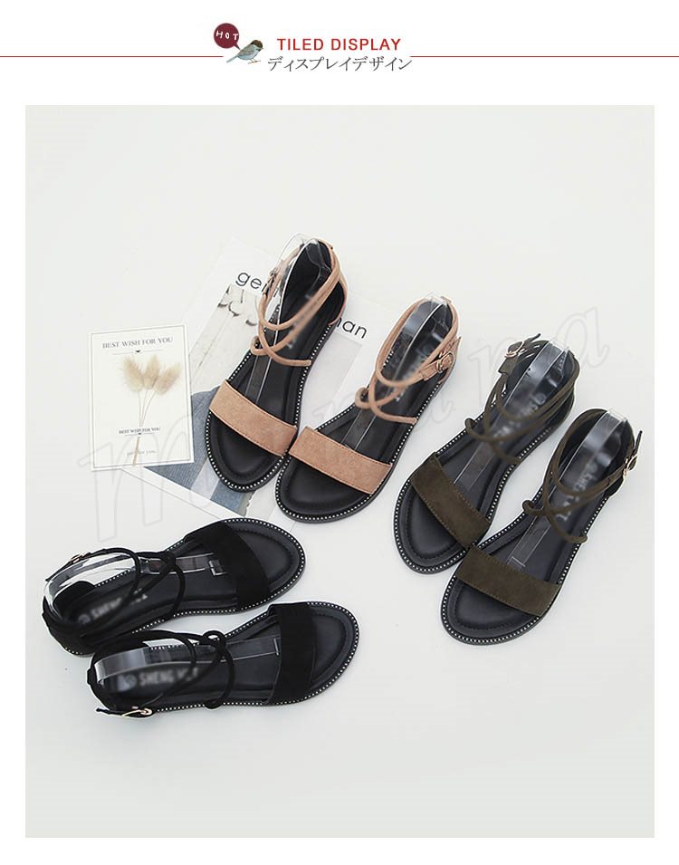 ストラップサンダル オープントゥ レディース アンクルストラップ ローヒール スウェード サンダル らくちん 2018夏新作