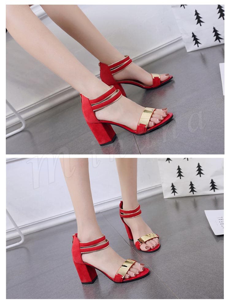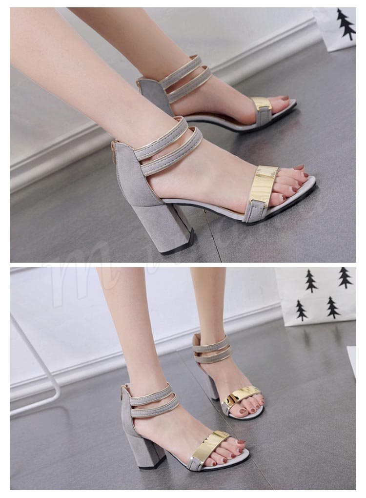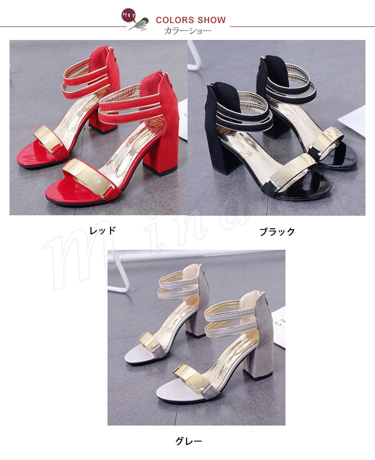 サンダル レディース スエード調 メタリック バックジップ 太ヒール チャンキーヒール ハイヒール 夏 シューズ 歩きやすい 痛くない