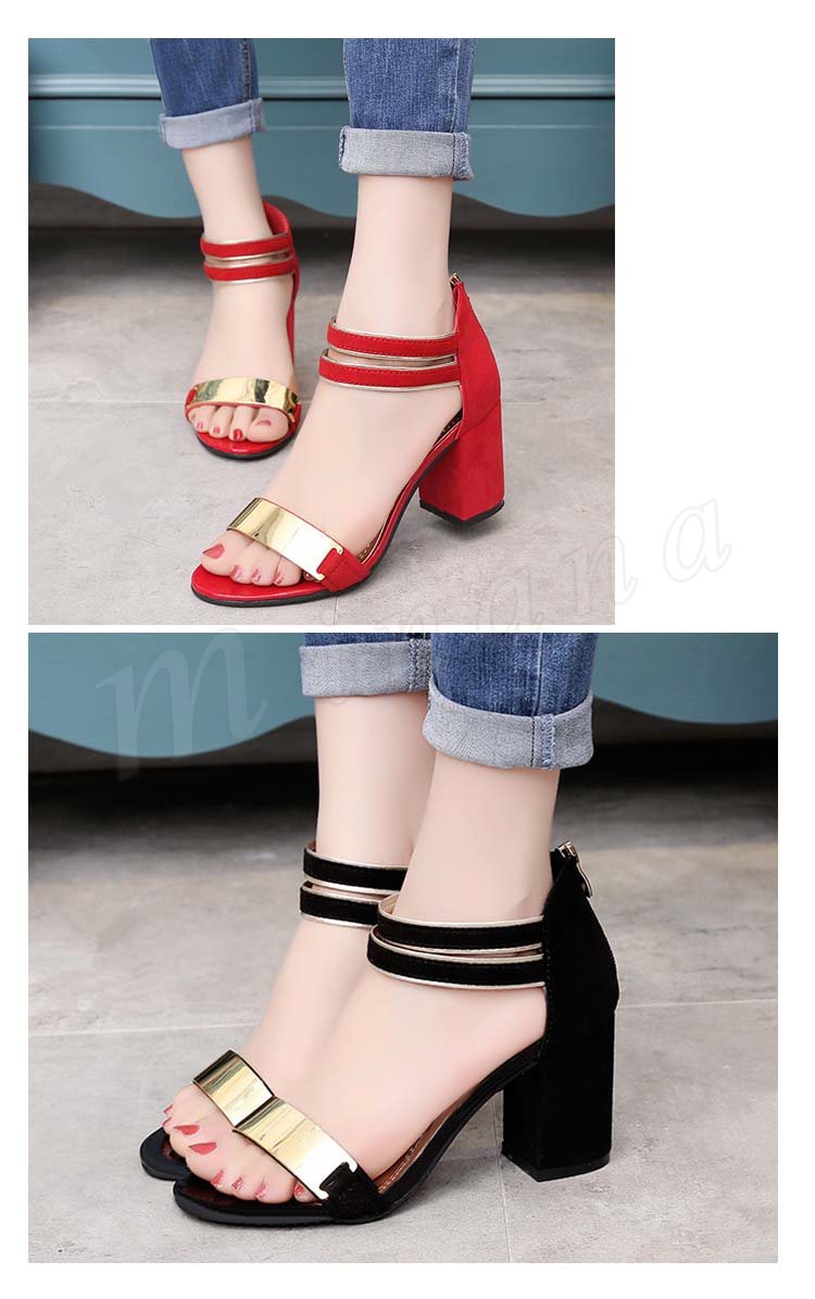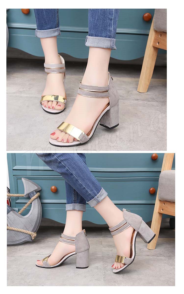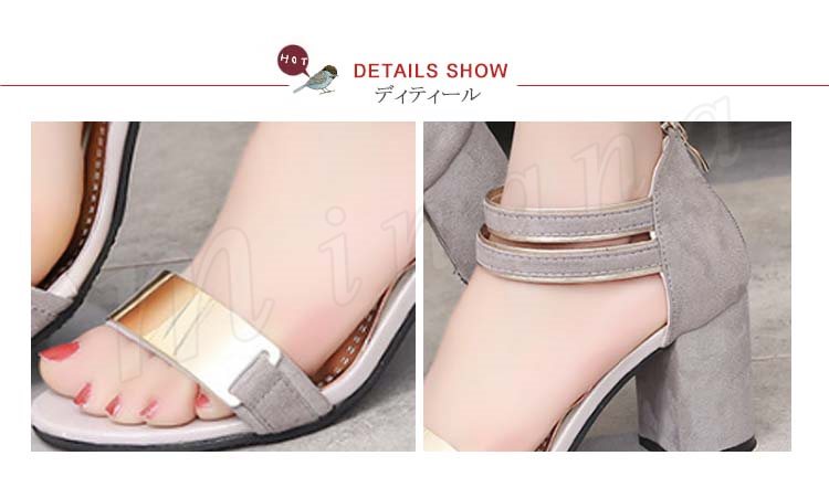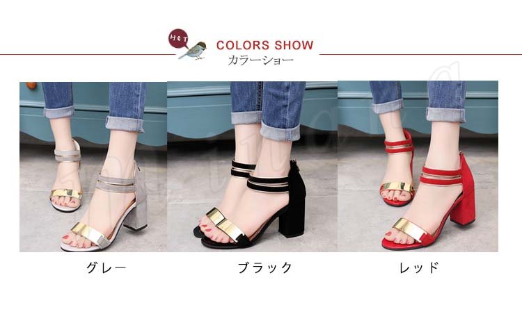 サンダル レディース スエード調 メタリック バックジップ 太ヒール チャンキーヒール ハイヒール 夏 シューズ 歩きやすい 痛くない