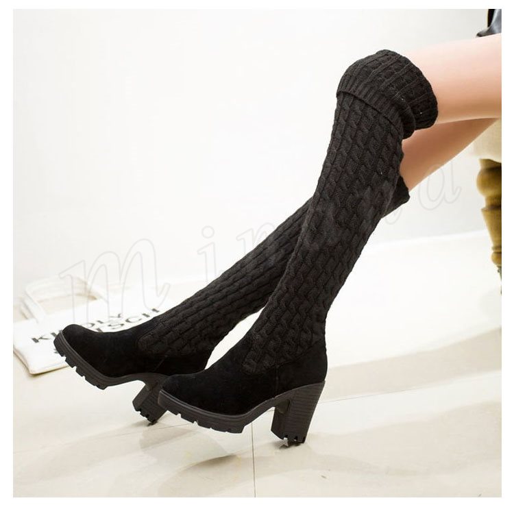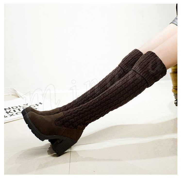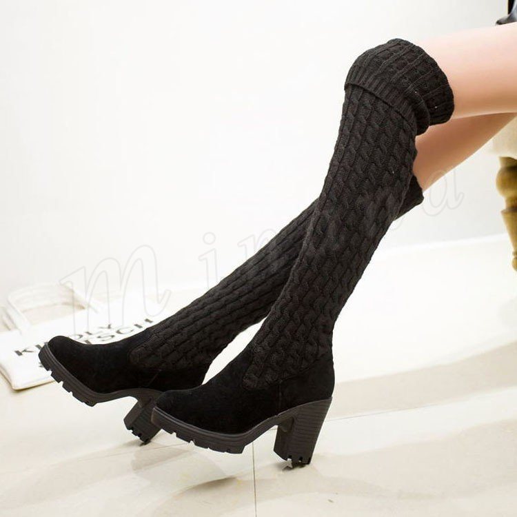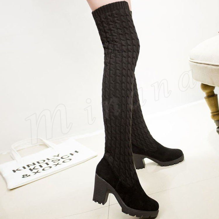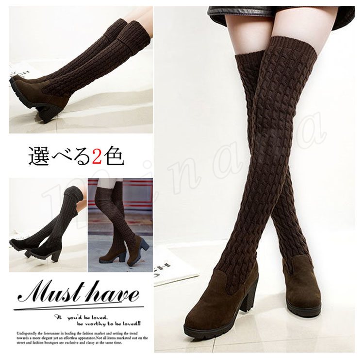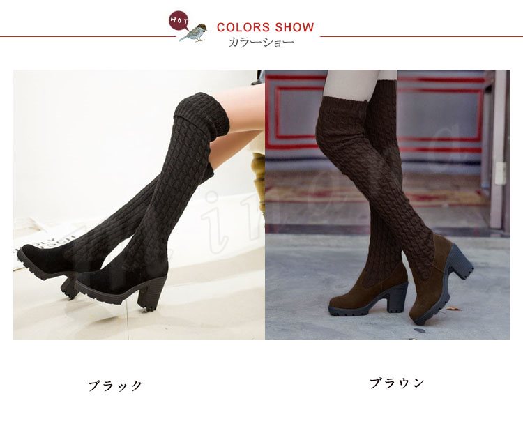 2018秋冬新作/ロングブーツ/レディース/裏起毛/裏ボア付き/靴/ハイヒール/ニット/歩きやすい/ニーハイブーツ/シューズ/春秋冬/厚手/おしゃれ/