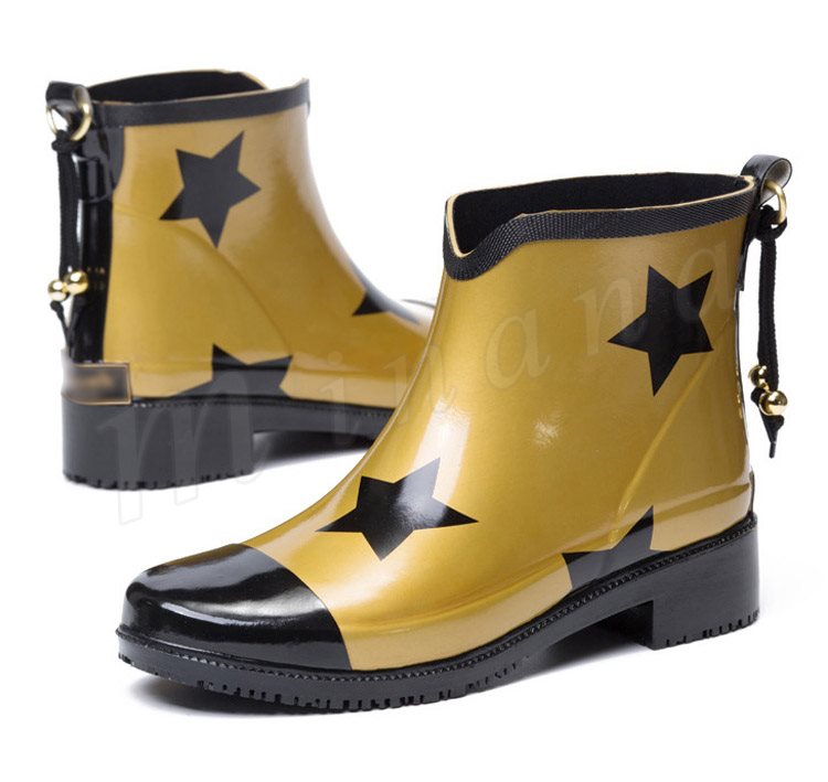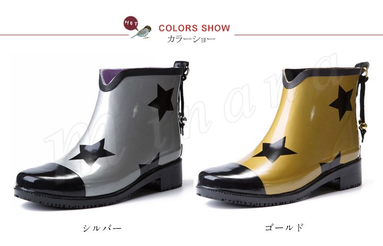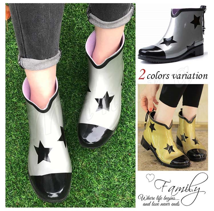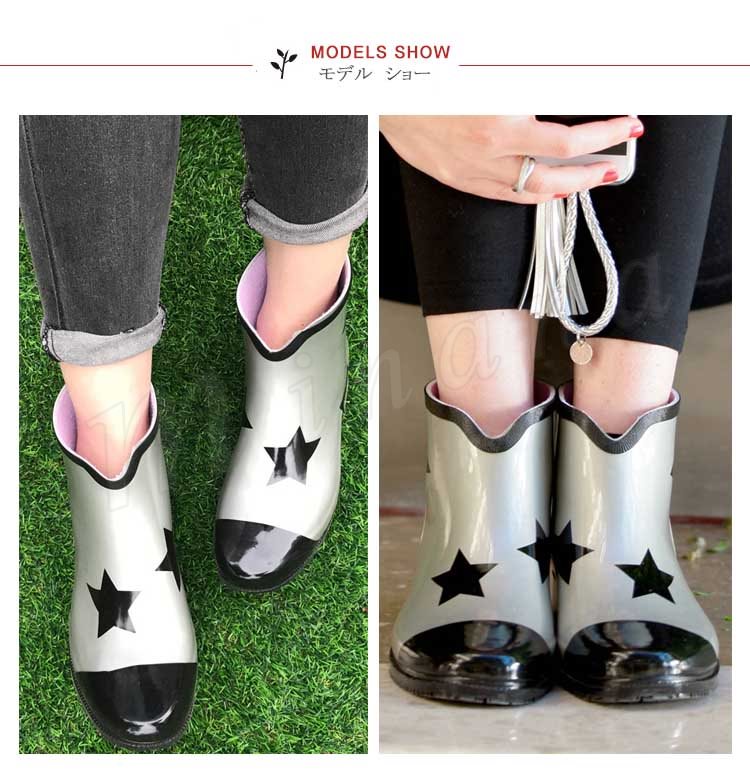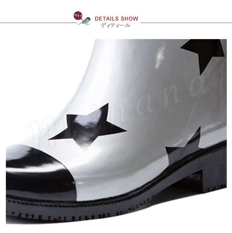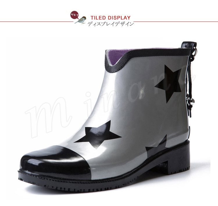 レインブーツ ショート レディース 星柄 ミドルヒール 完全防水 おしゃれ 雨靴 レインシューズ 雨具 梅雨対策