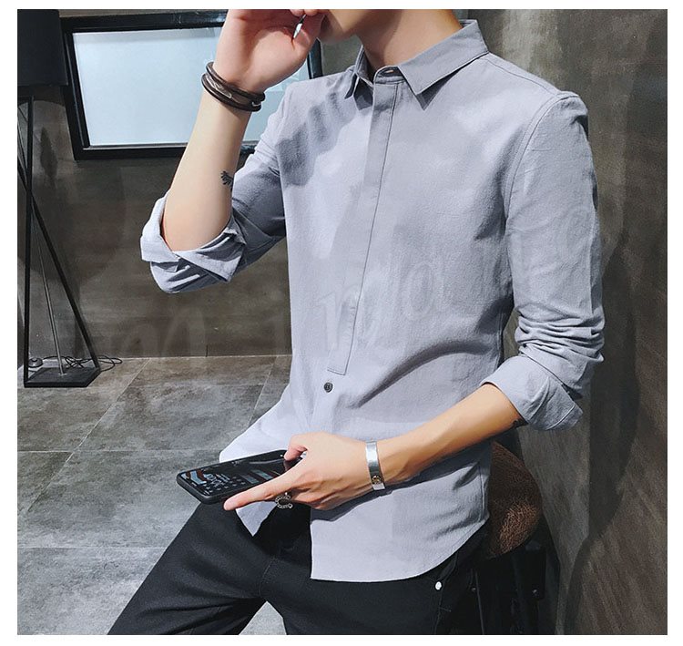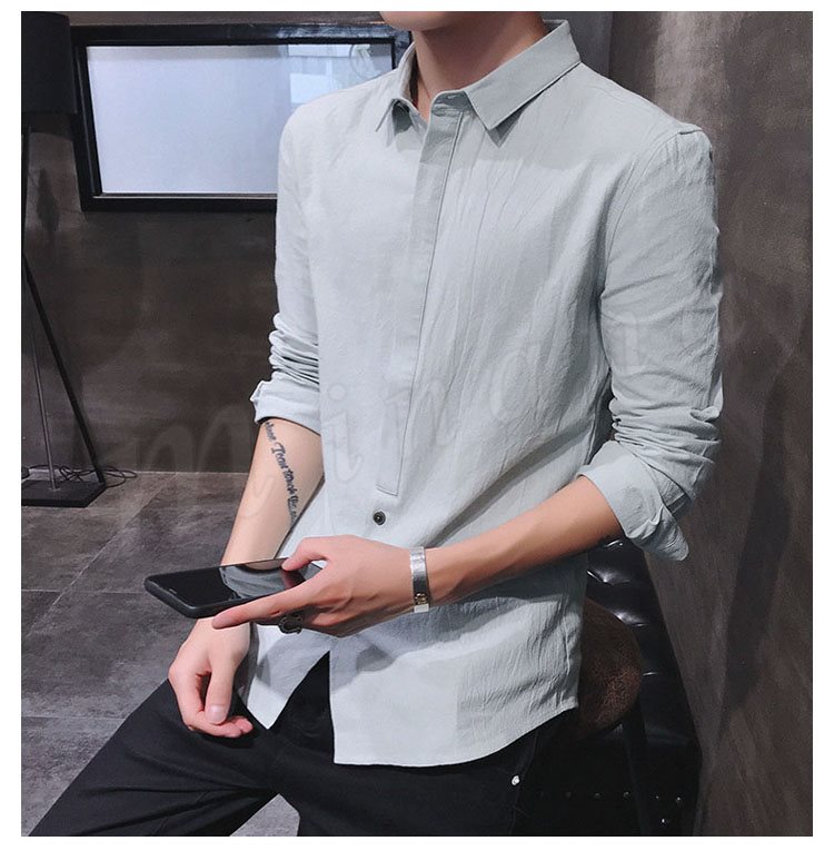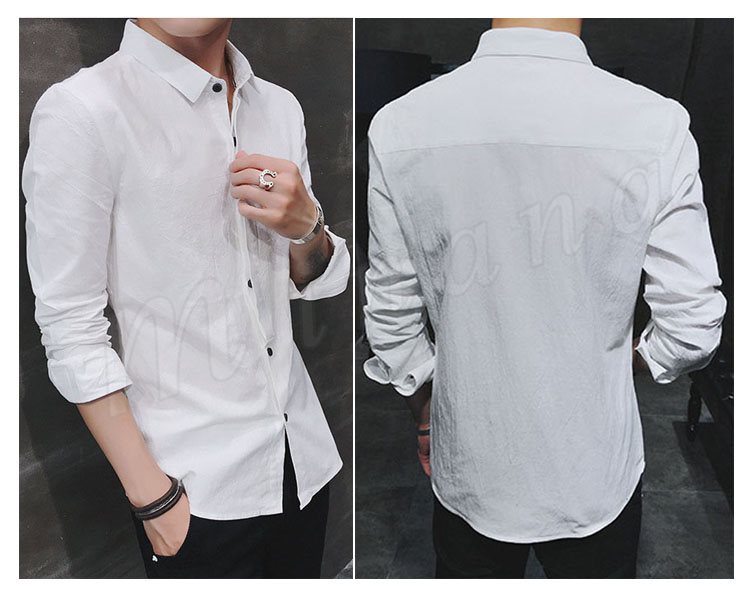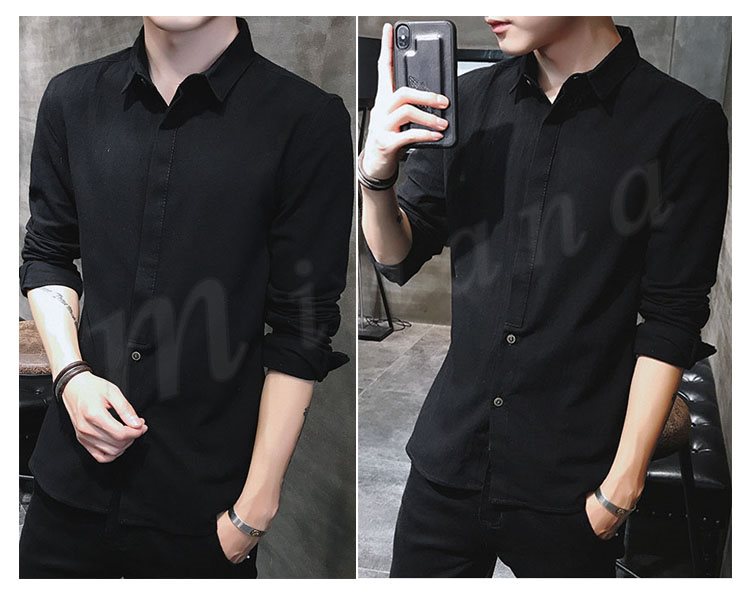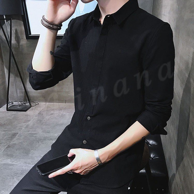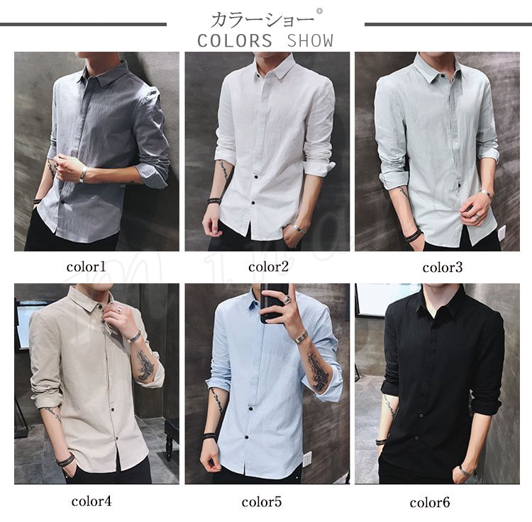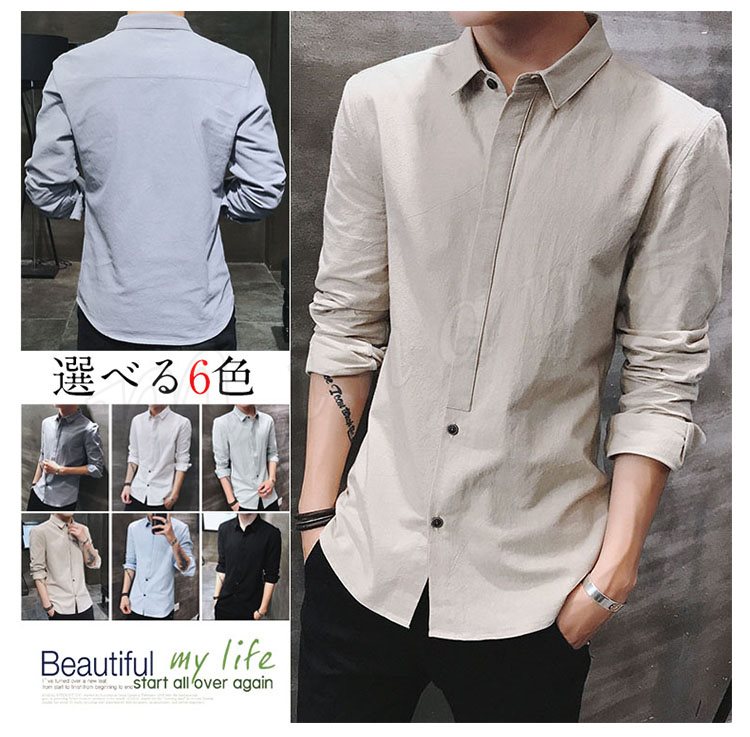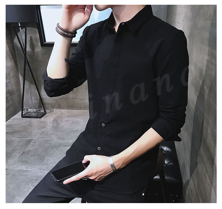 2018秋新作 メンズシャツ 長袖シャツ 無地 ビジネス カジュアルシャツ 通勤 細身 かっこいい きれいめ 春秋 シンプル 男性用 トップス おしゃ