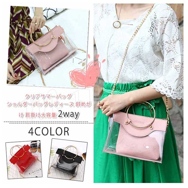 クリアサマーバッグ ショルダーバッグ 防水 スポーツ プールバッグ・ビーチバッグ夏物 トレンド 流行 デートレディース バッグ 2way シンプル 透