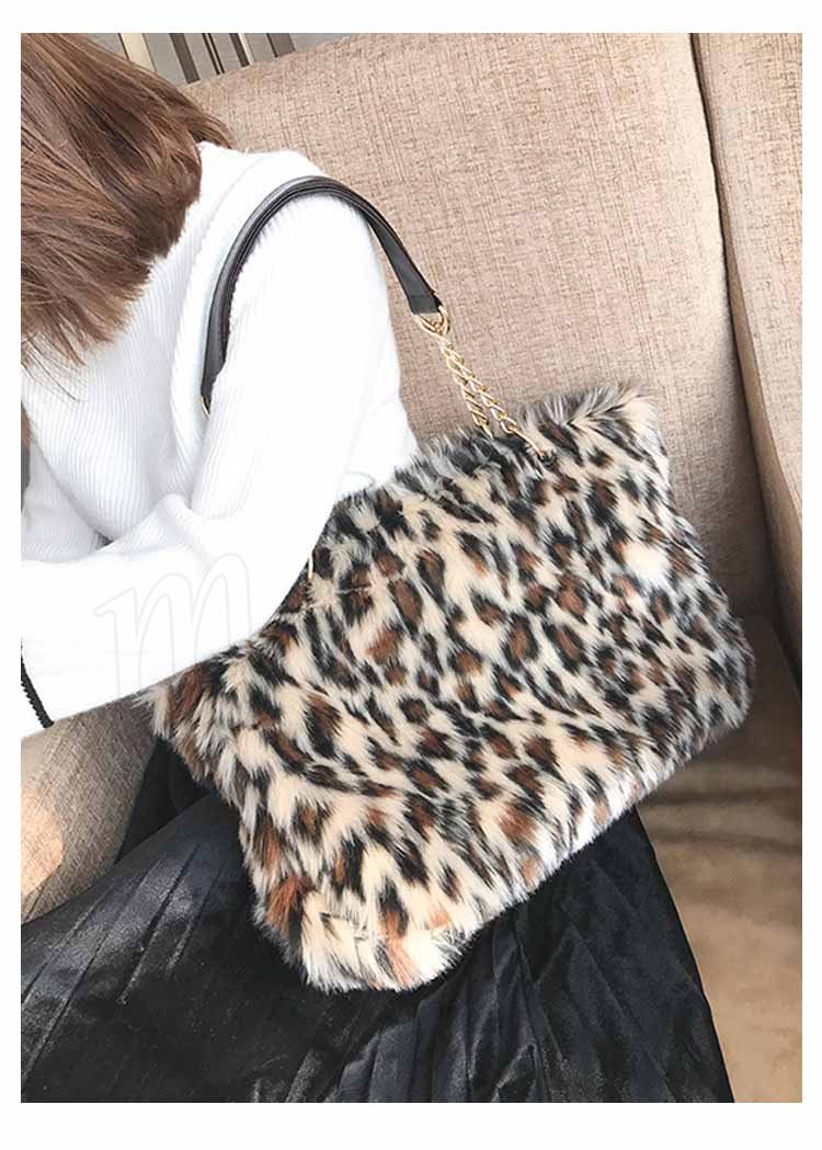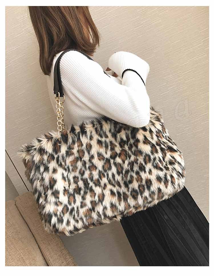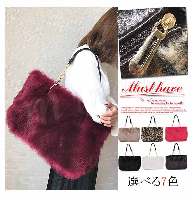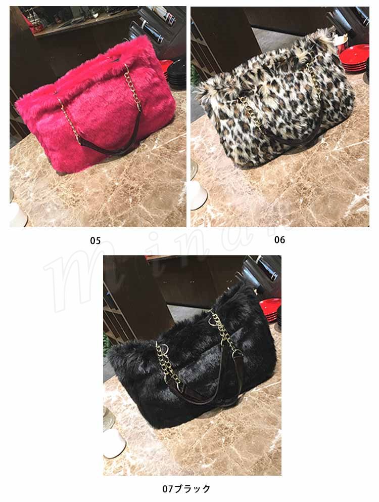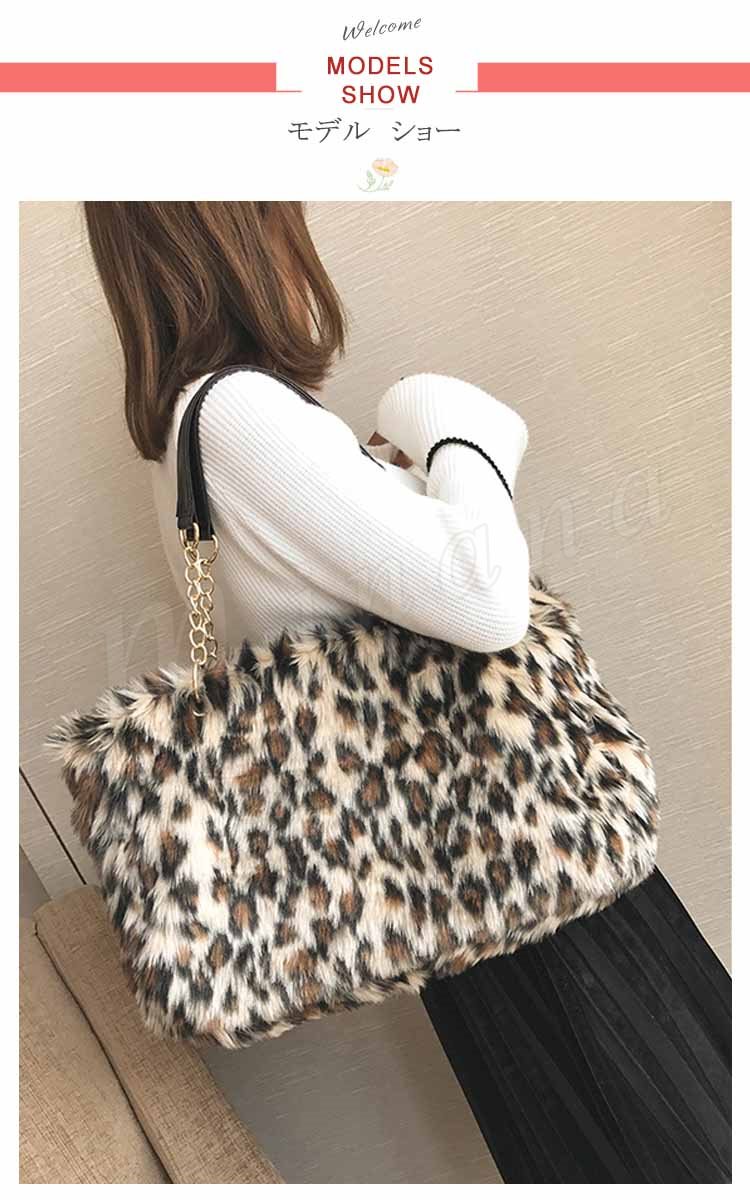 ファー ファーバッグ ショルダーバッグ トートバッグ レディース a4 大きめ 軽量 通勤 チェーン 秋冬 秋 冬 黒 ブラック 豹柄 ヒョウ柄 アニ
