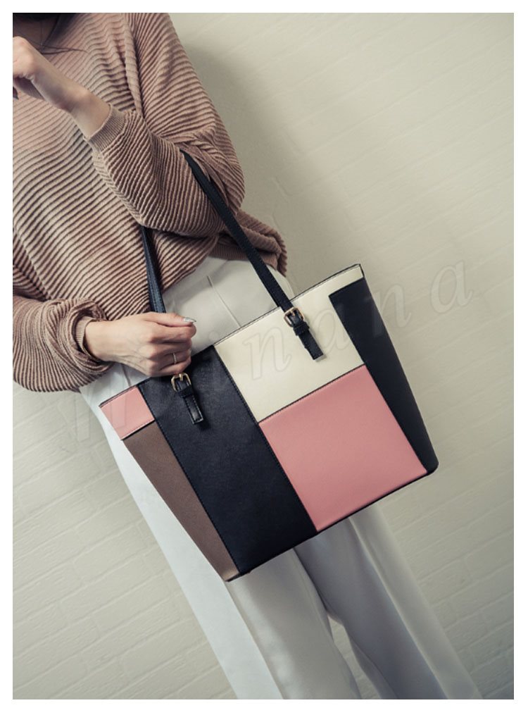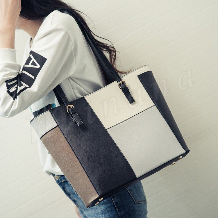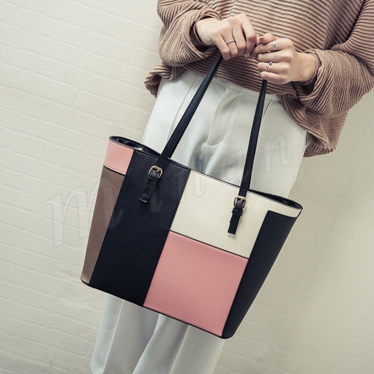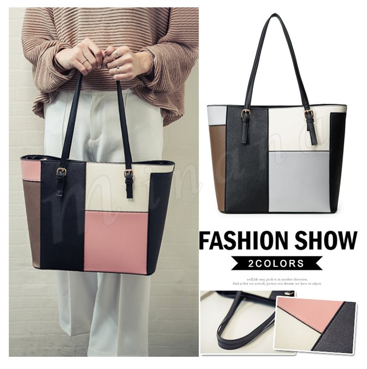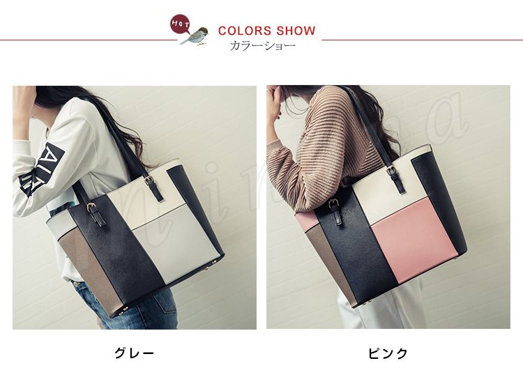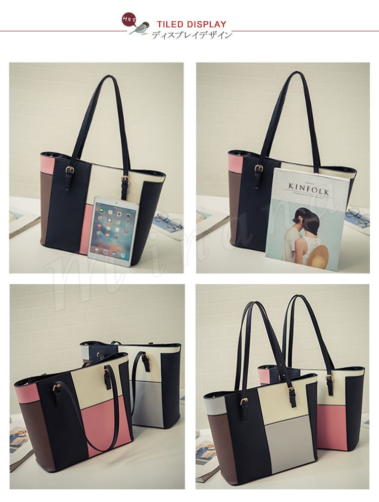 トートバッグ レディース レザー調 パッチワーク風 トート ハンドバッグ
