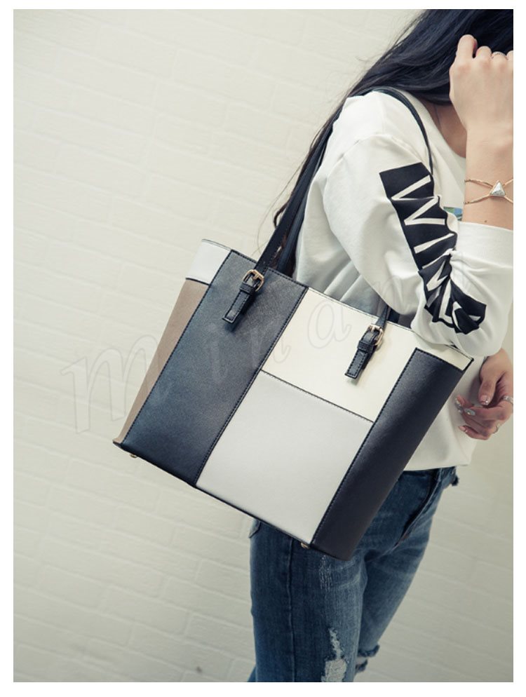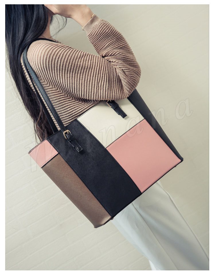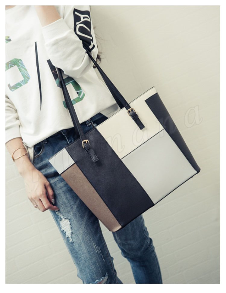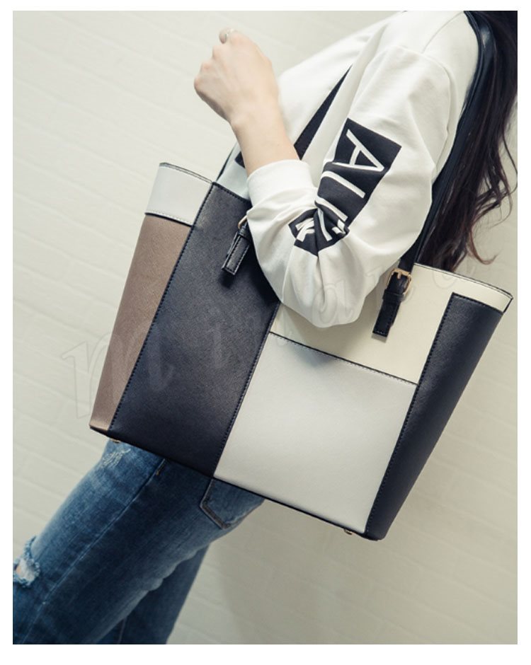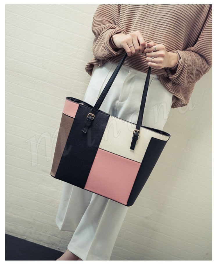 トートバッグ レディース レザー調 パッチワーク風 トート ハンドバッグ