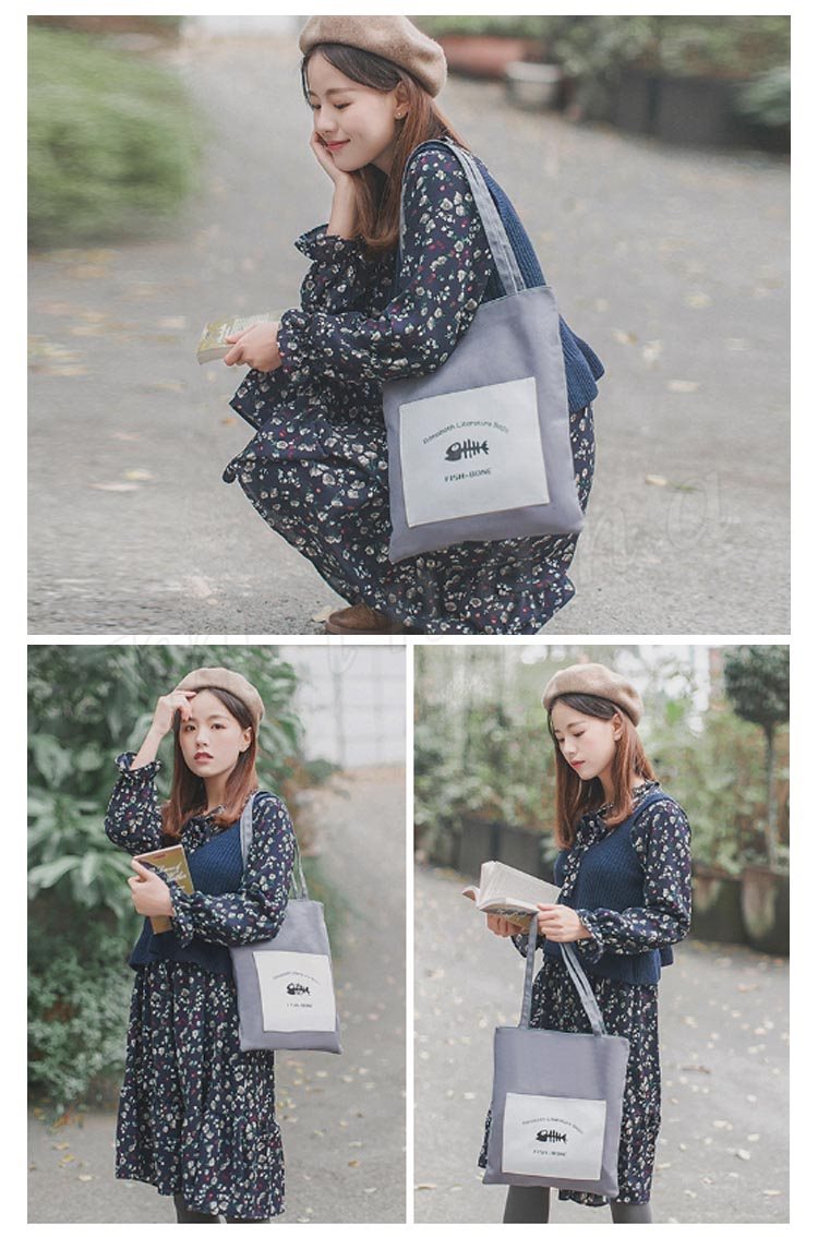 帆布 キャンバストートバッグ 大容量 鞄 カバン レディース バッグ トートバッグ 魚プリント ショッピングバッグ