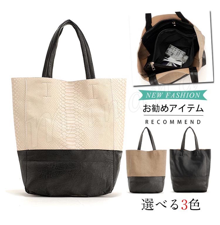 トートバッグ レディース 革 バッグ 大きめ A4 フェイクレザー バイカラー 無地 大きい バッグ トート トートバック レザー 革 ファスナー お