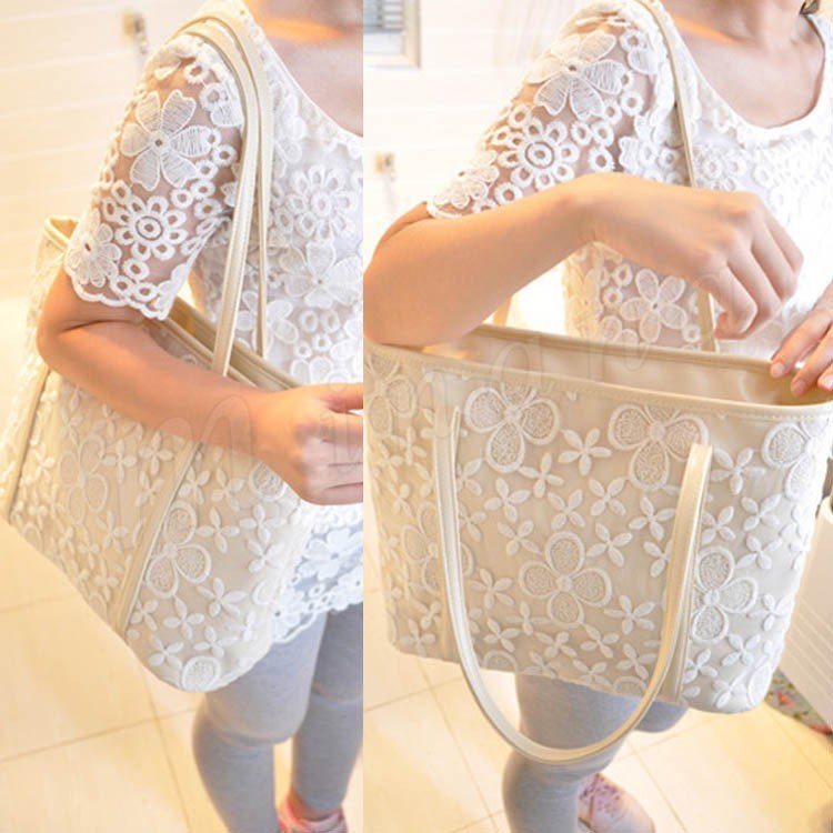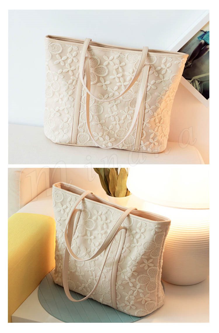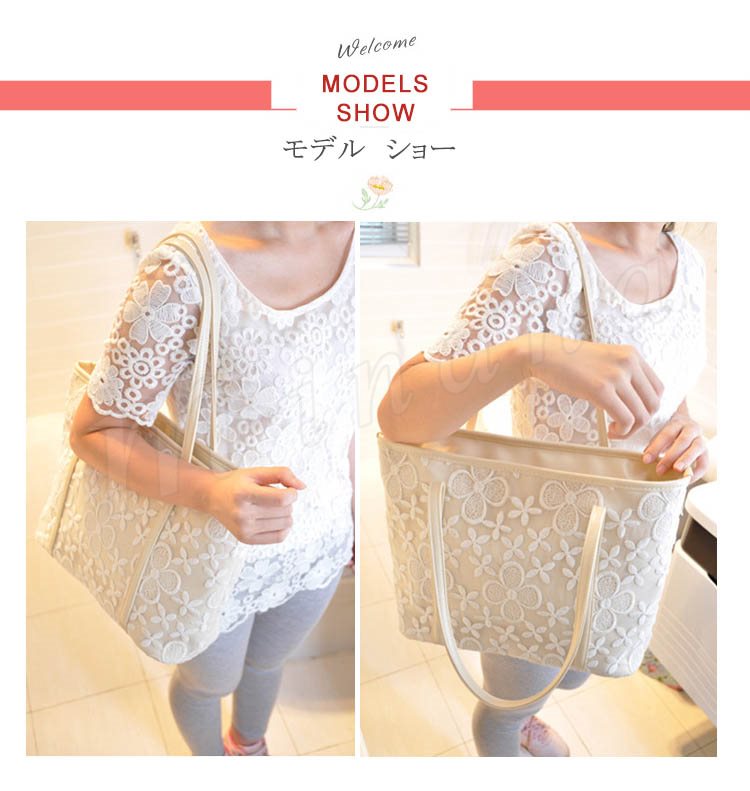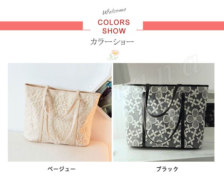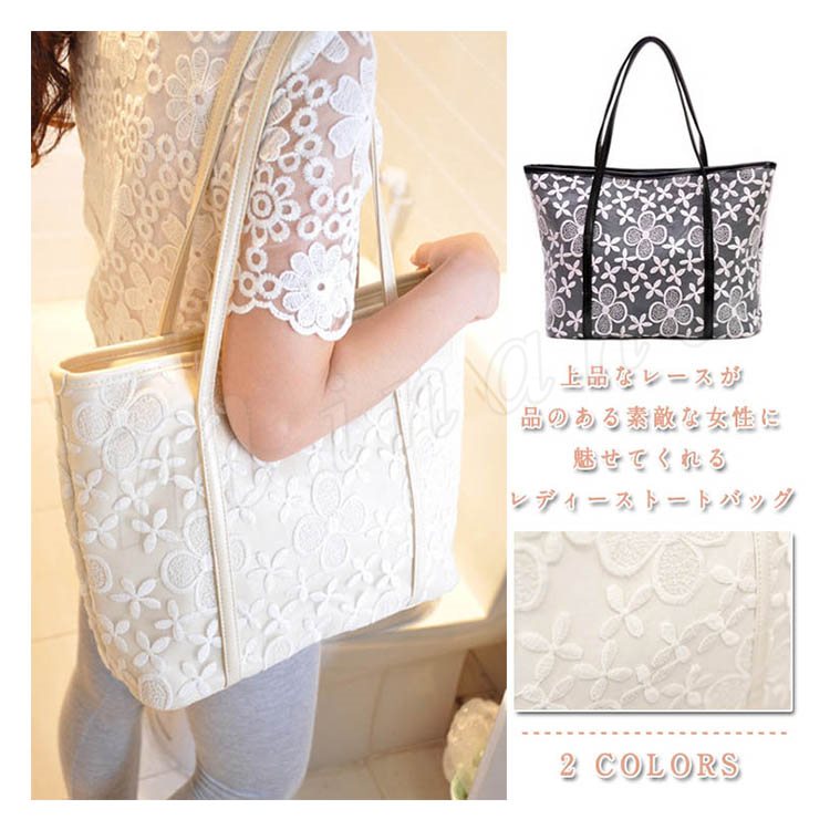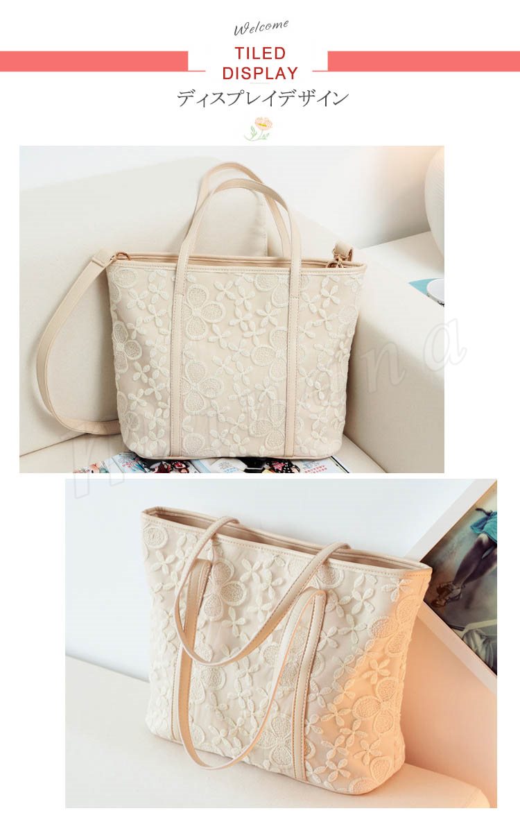 トートバッグ レディース 大きめ ファスナー付き レース 女性 かばん