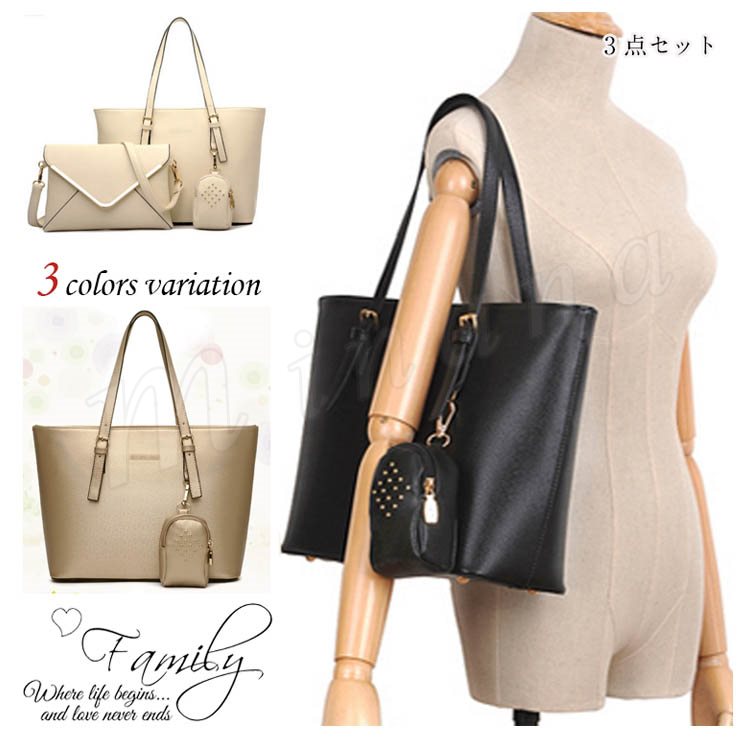 ショルダーバッグ レディース ハンドバッグ 3点セット 手持ち 斜めがけ 2WAY ミニバッグ 通勤用PU レザー 鞄 かばん 新作 可愛い 3色