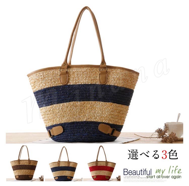 バック レディース かごバック トートバック 草編みバッグ かばん 麦わら ハンドバック カバン 編み 手提げ 手持ち 軽量 大容量 無地 裏地付き