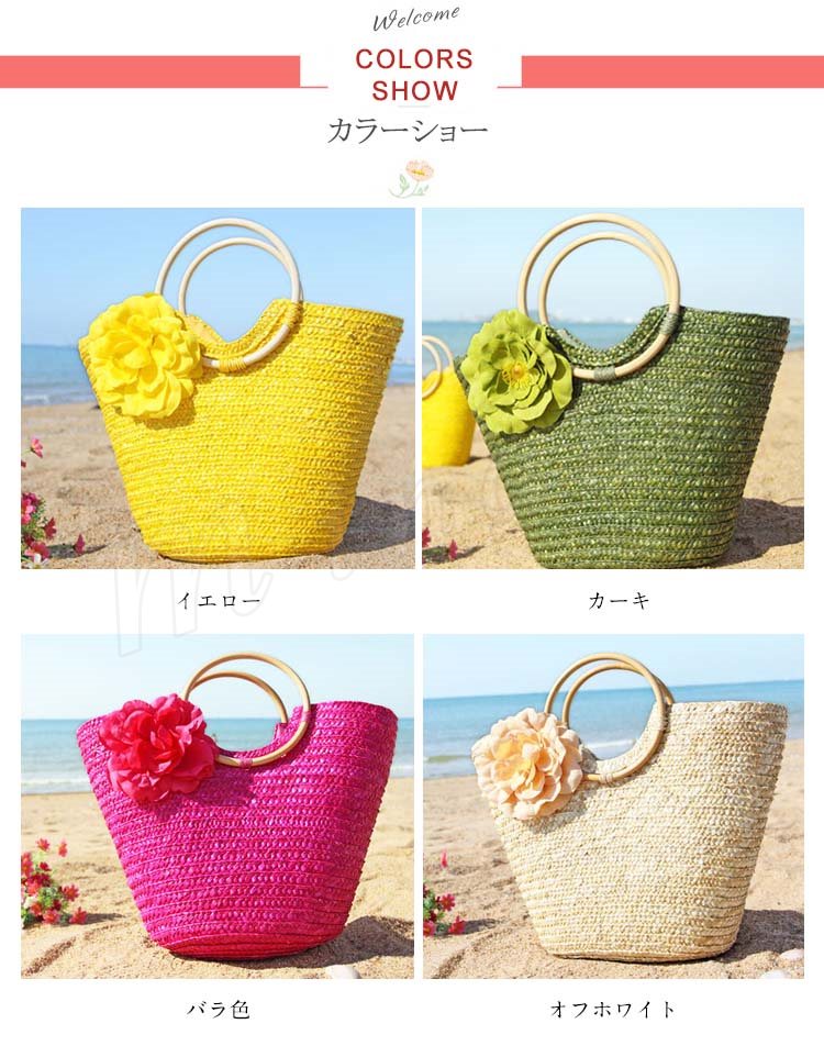 カゴバッグ ビーチバッグ ハンドバッグ レデイース 手提げ 編みバッグ 織バッグ 夏 カジュアル ファッション オシャレ 夏新作