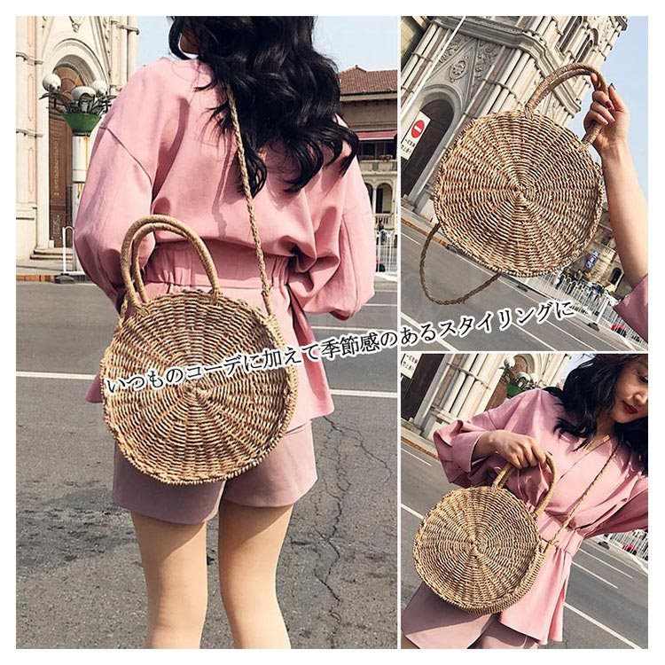 丸型ルックスがかわいい!サークルかごバッグ レディース かごバッグ ショルダーバッグ カゴバッグ 丸型 カゴ バッグ 鞄 かばん 大人 可愛い 春 夏