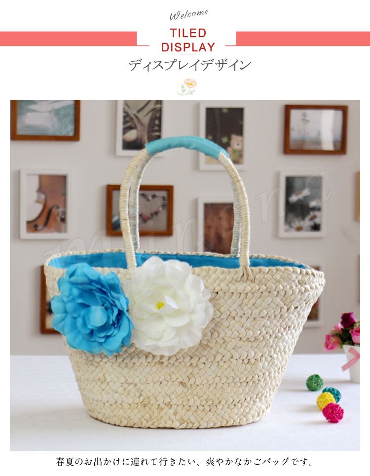 レディース バッグ かごバッグ トートバッグ レディース 夏 無地 ストロー カゴバッグ 大容量 ストローバッグ コサージュ付き 大人可愛い 肩掛け