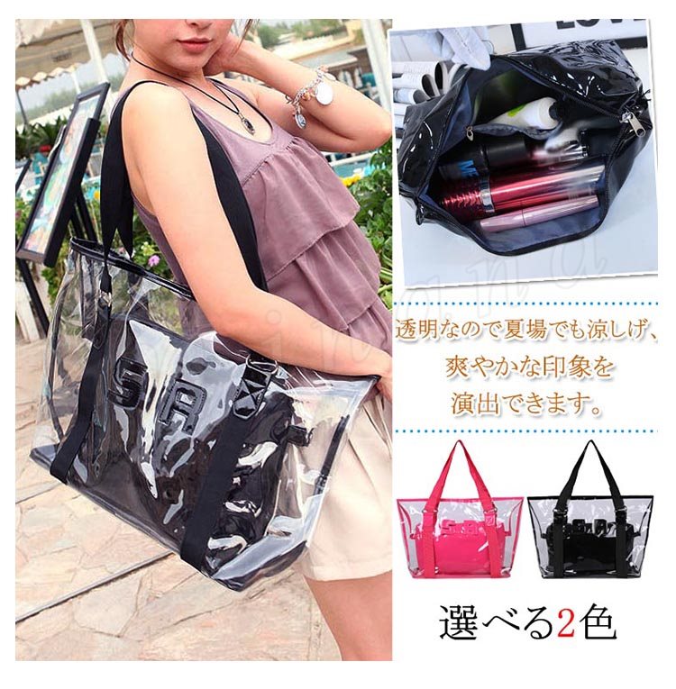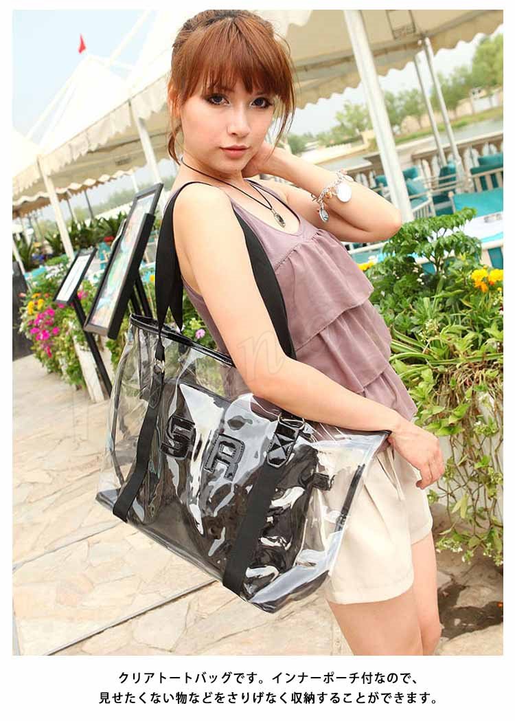 透明 ビニール トート バッグ ポーチ 付き クリアトートバッグ