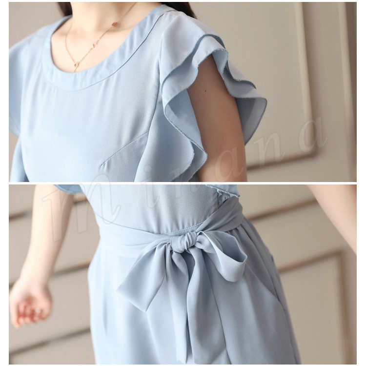 ウエストおおきめリボンベルトをプラスして、くびれラインを演出してくれます。