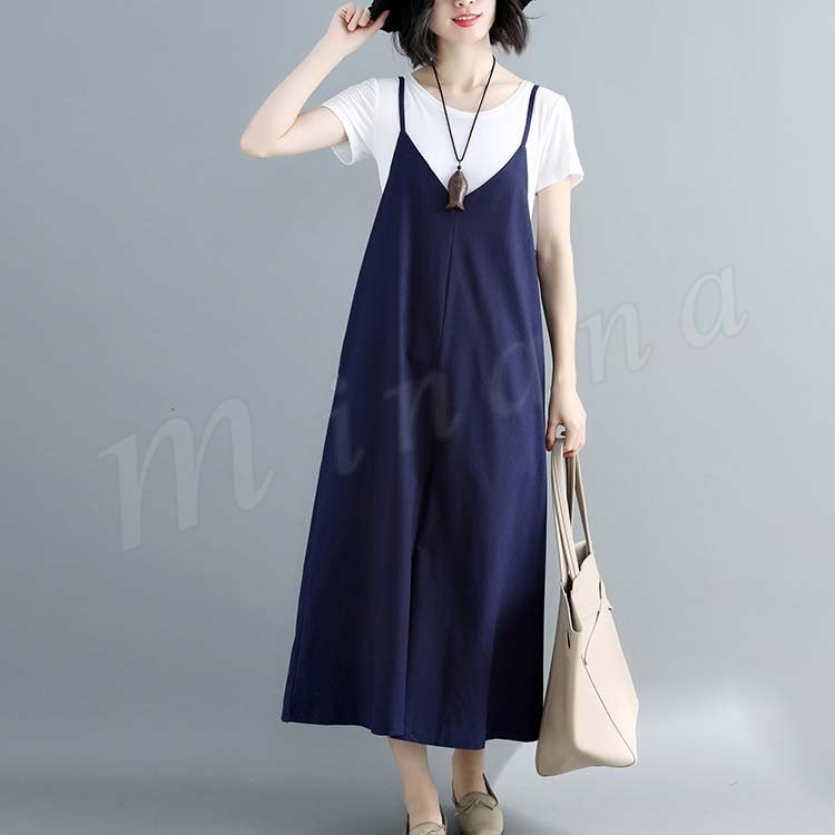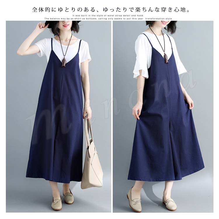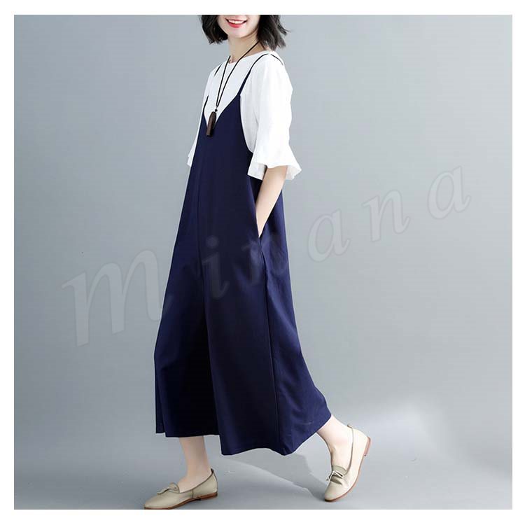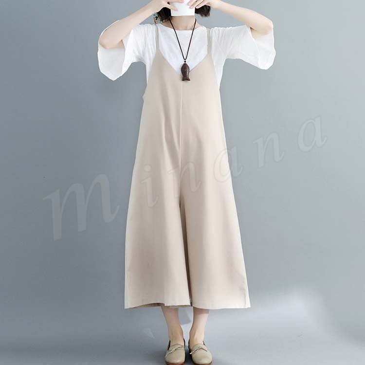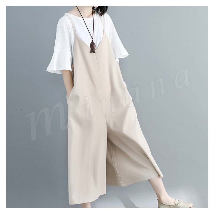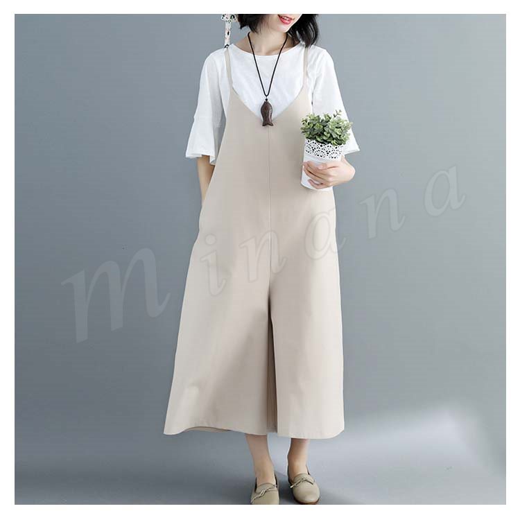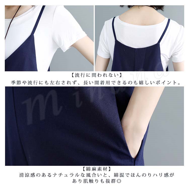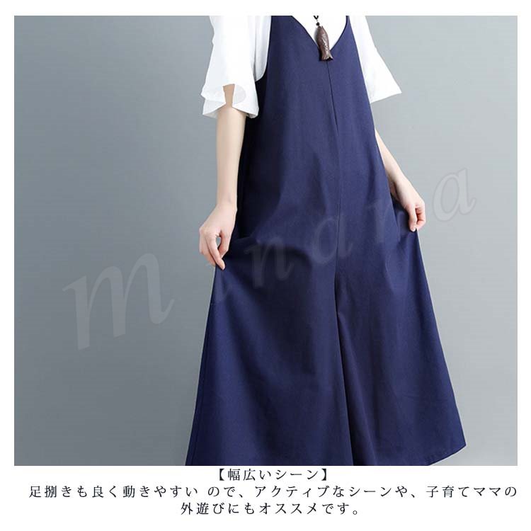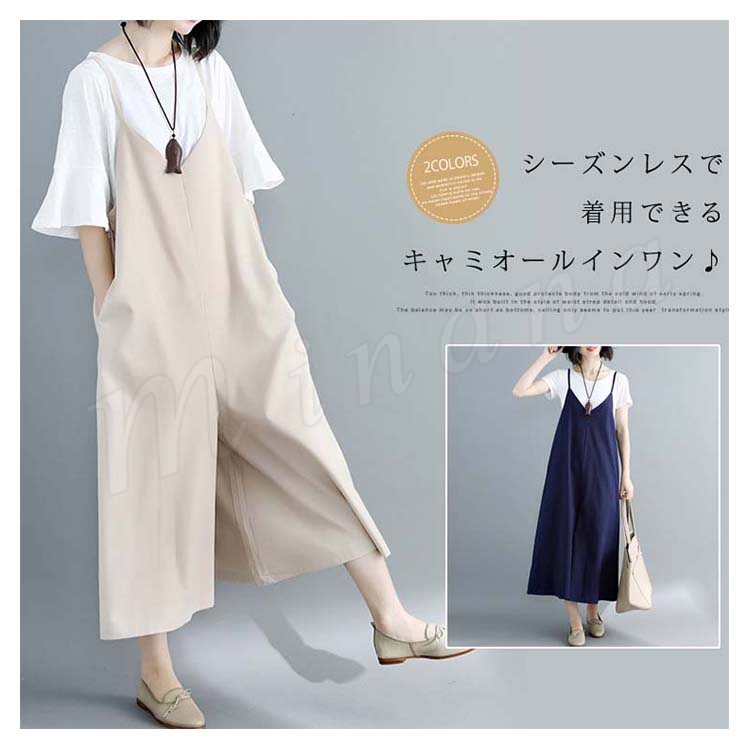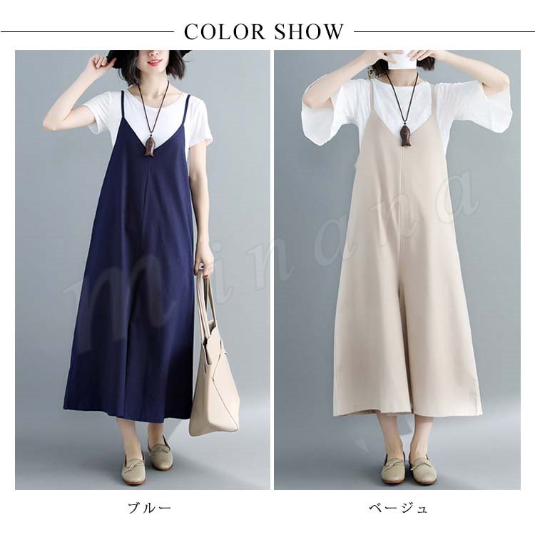 [2色展開]キャミオールインワン サロペット レディース オールインワン キャミソール ワイドパンツ マキシ丈 ロング丈 春夏 綿麻 体型カバ