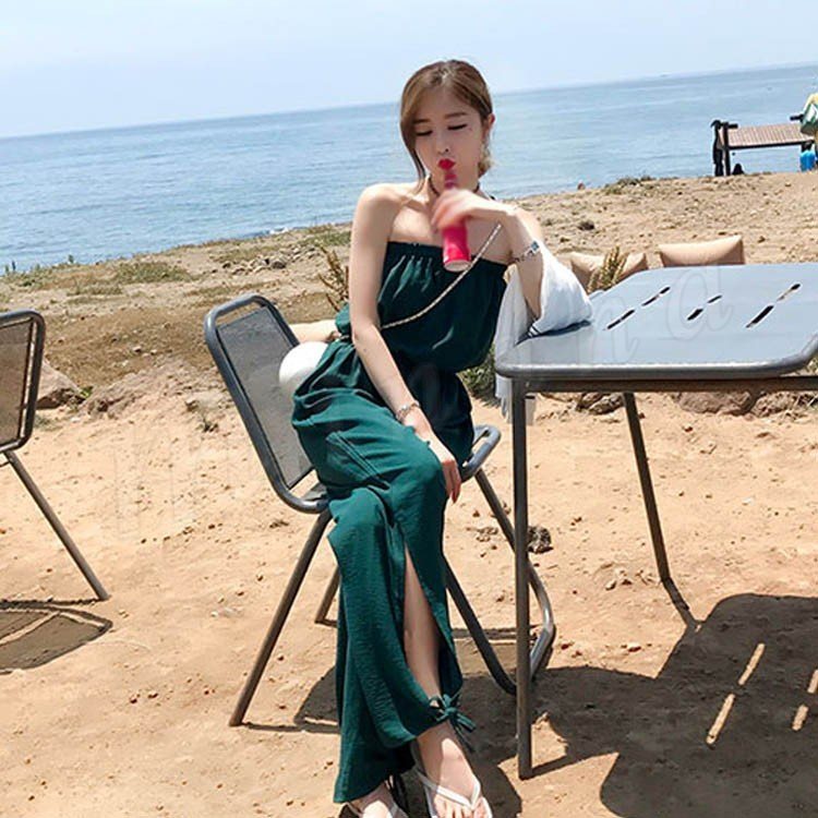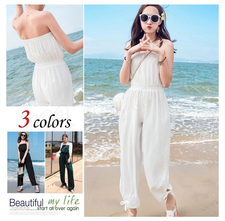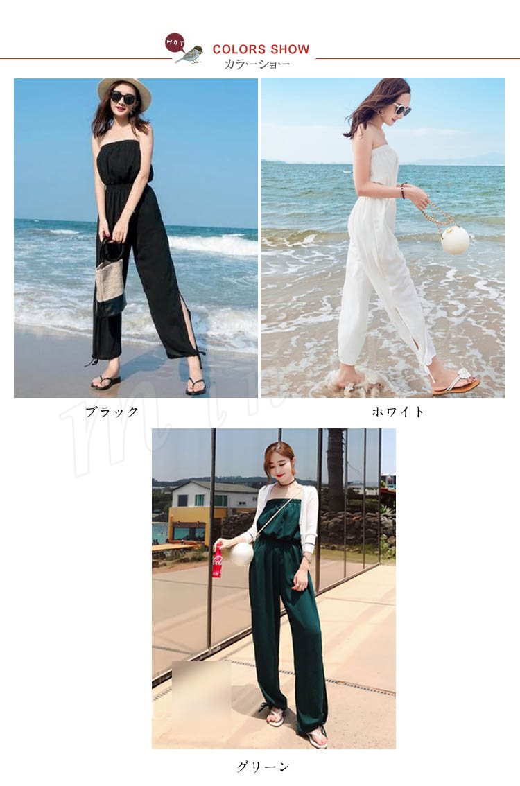 オールインワン レディース ベアトップ 無地 パンツドレス 袖なし 大人っぽい 着痩せ ハイウエスト 結婚式 ワイドパンツ 二次会 夏 通勤