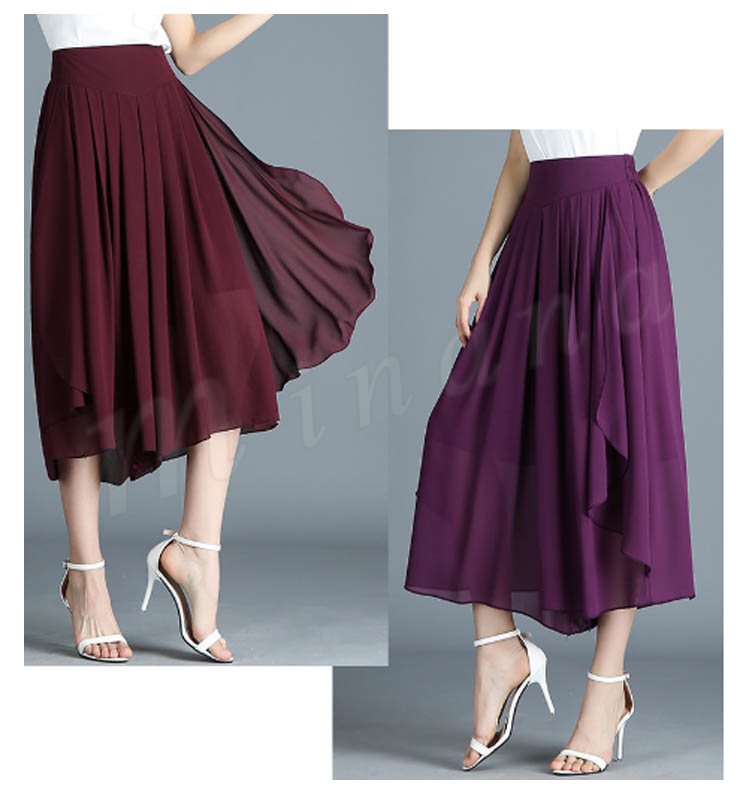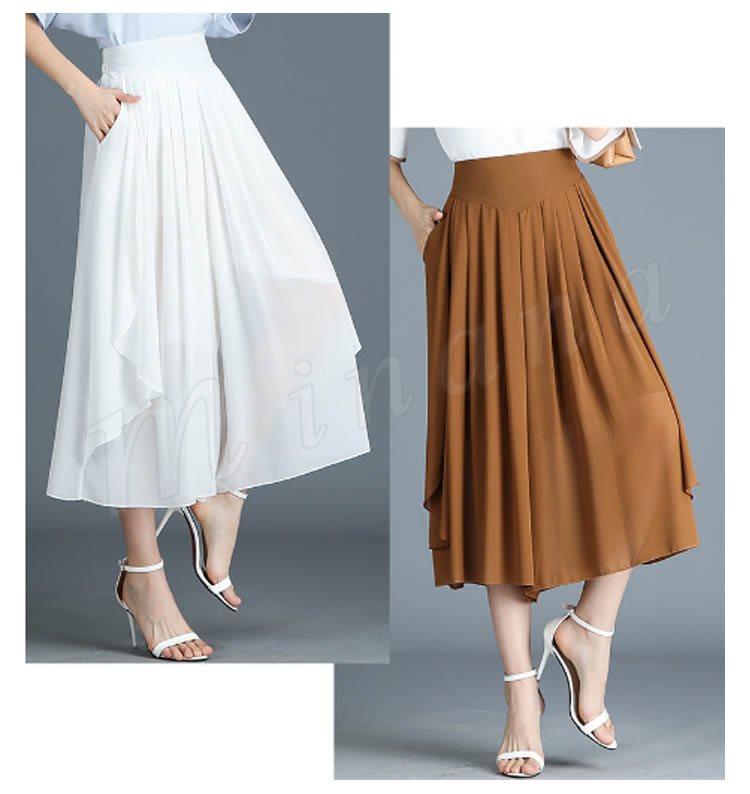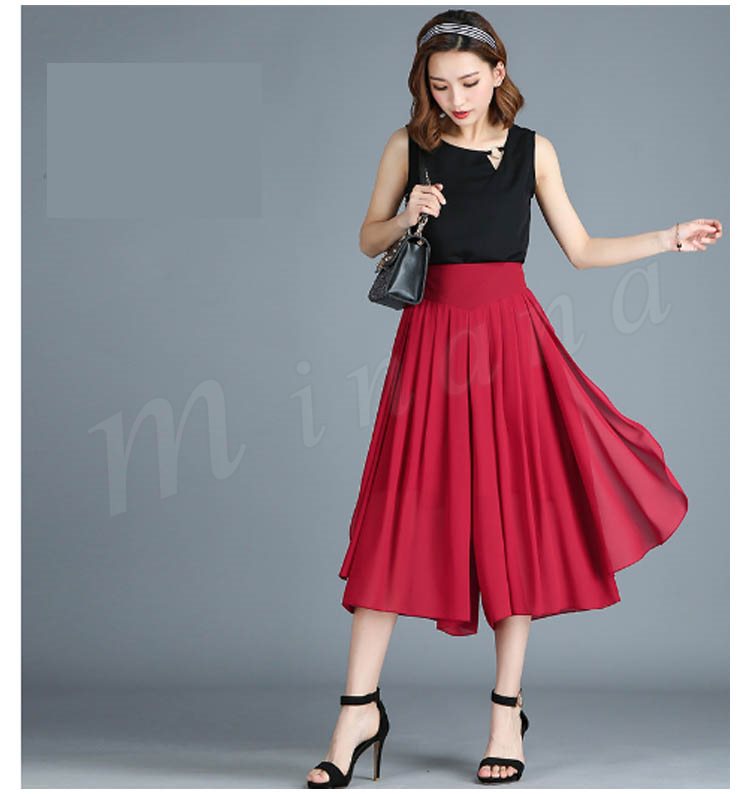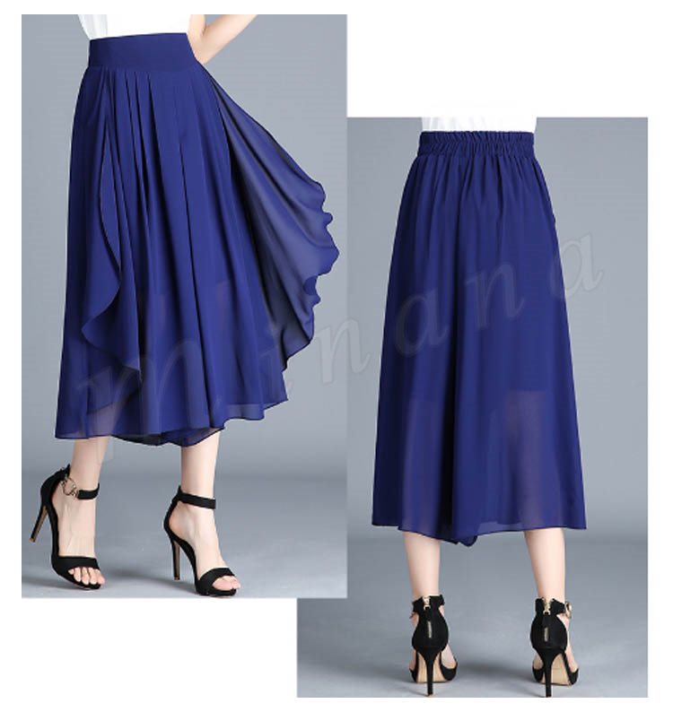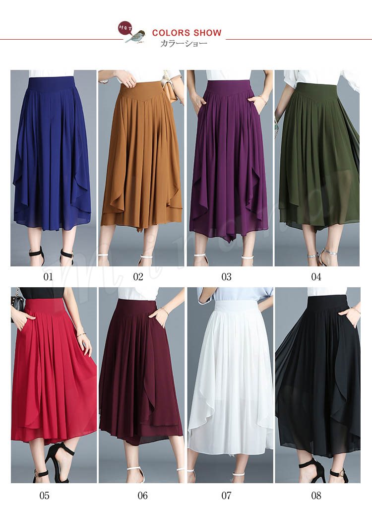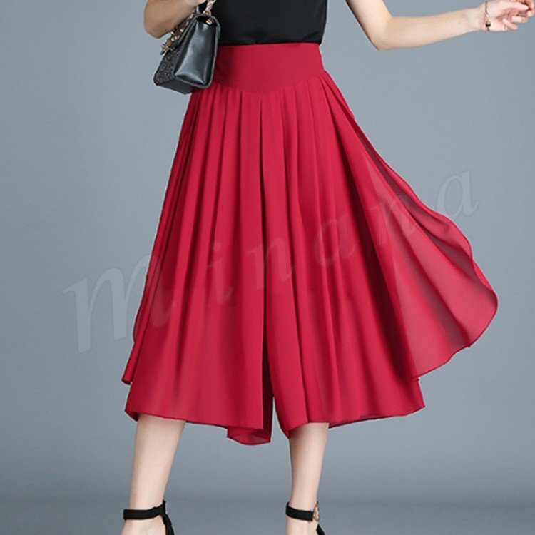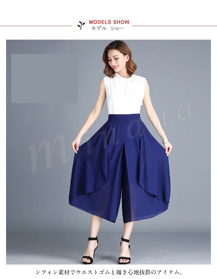 七分丈 ガウチョパンツ スカンツ スカートパンツ クロップドパンツ ボトムス カジュアル ゆったり ワイドパンツ