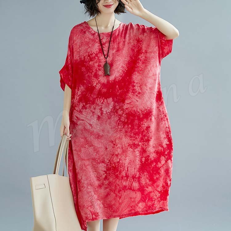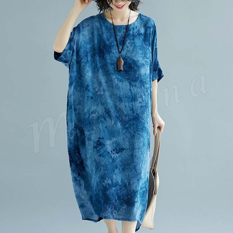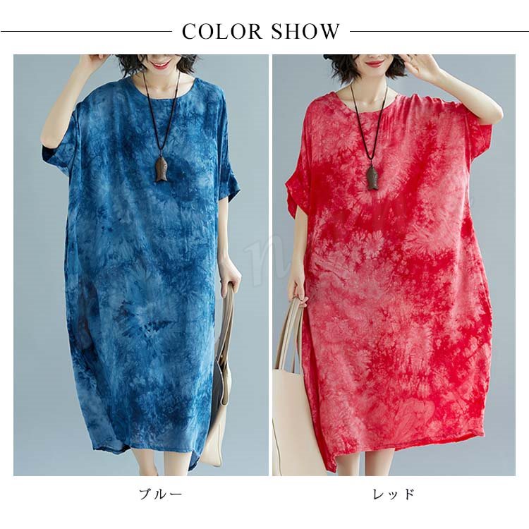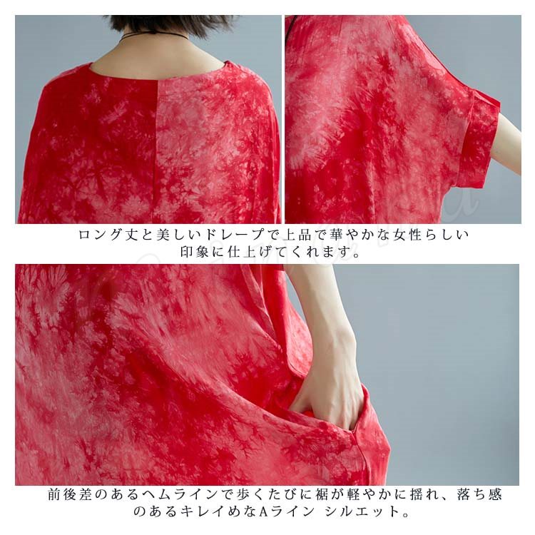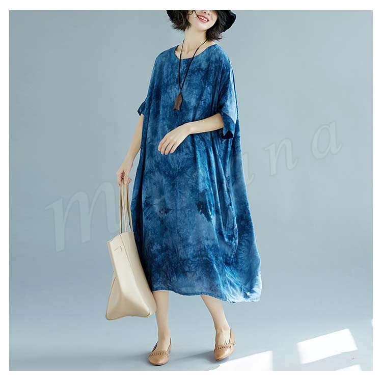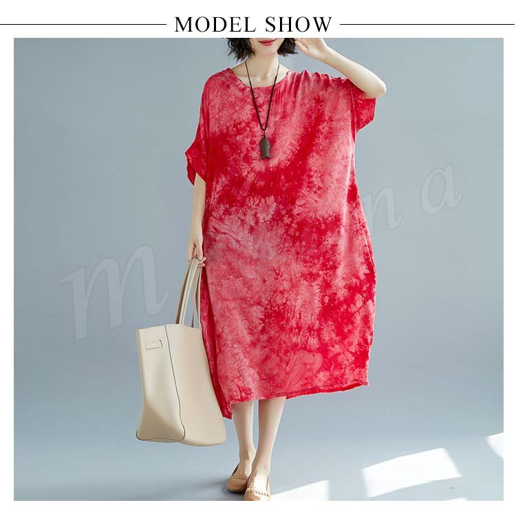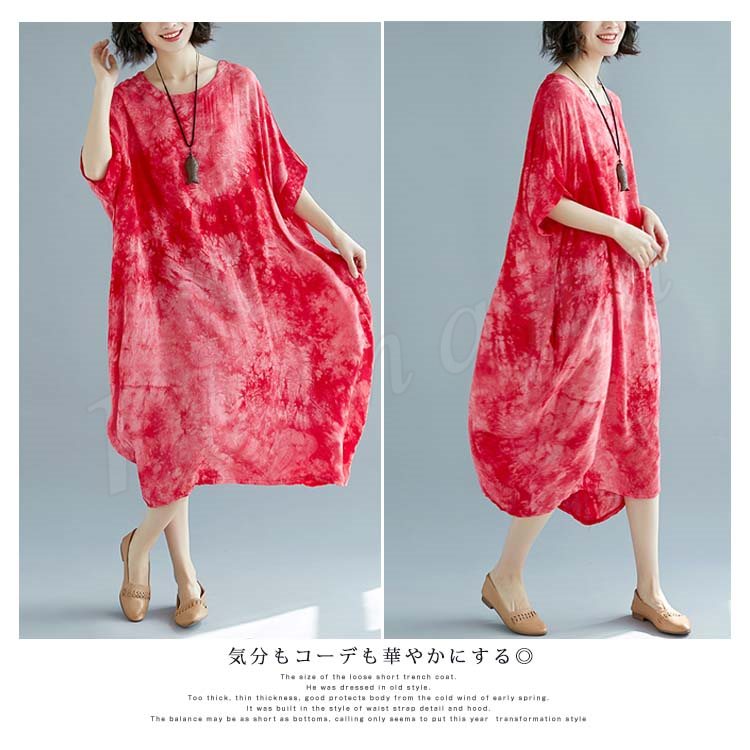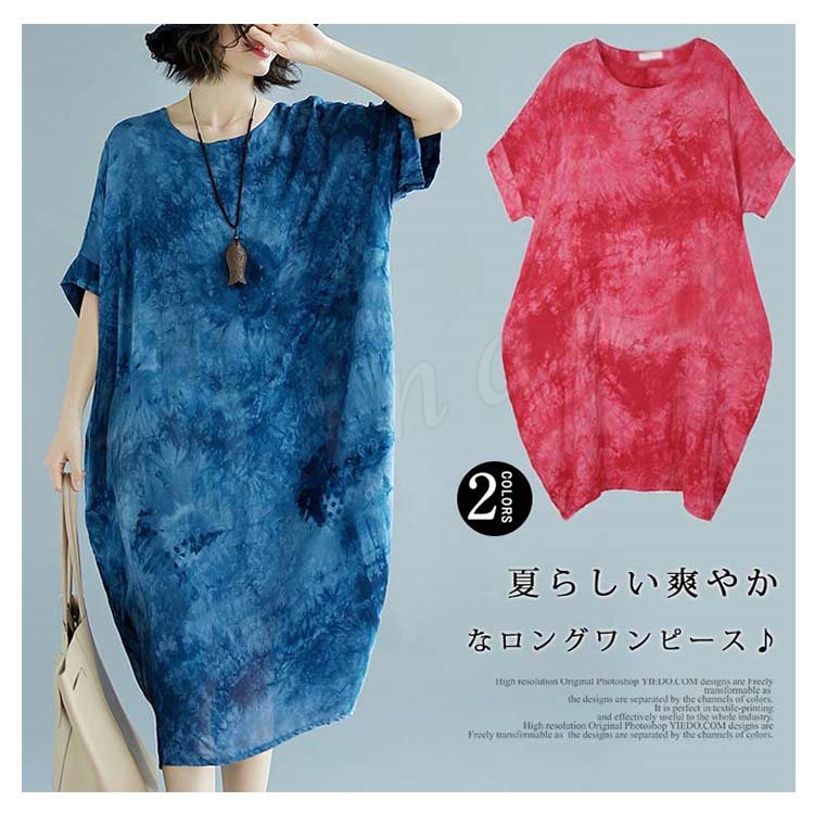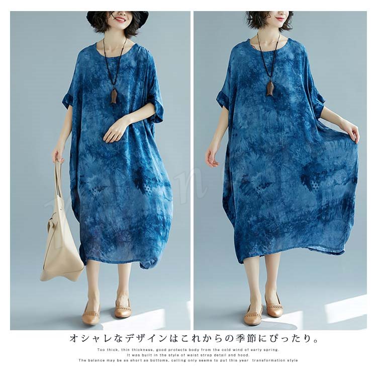 [2色]総柄ワンピース ワンピース ワンピ レディース プリント 花柄ワンピ 綿麻 5分袖 五分袖 マキシ丈 ロング丈 Aライン 春夏 女子