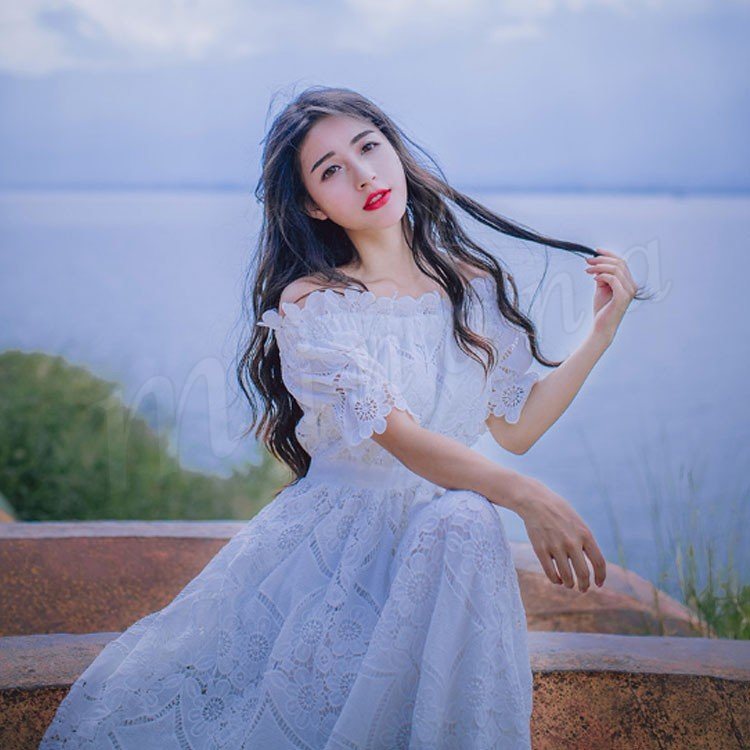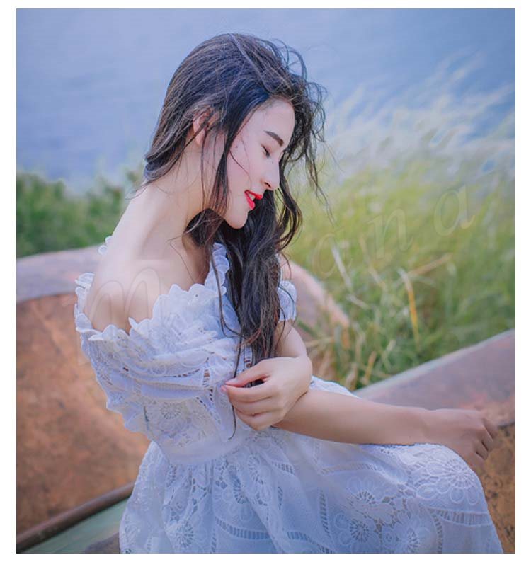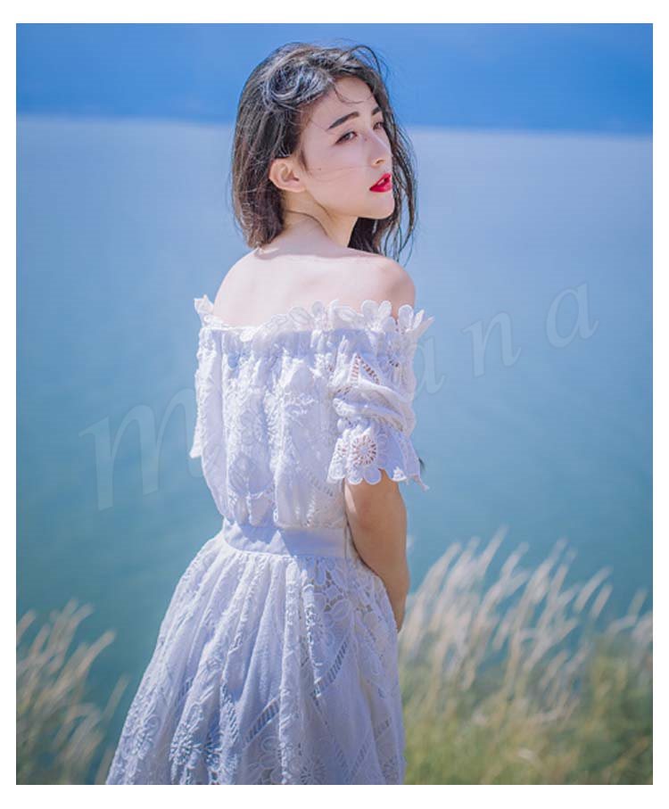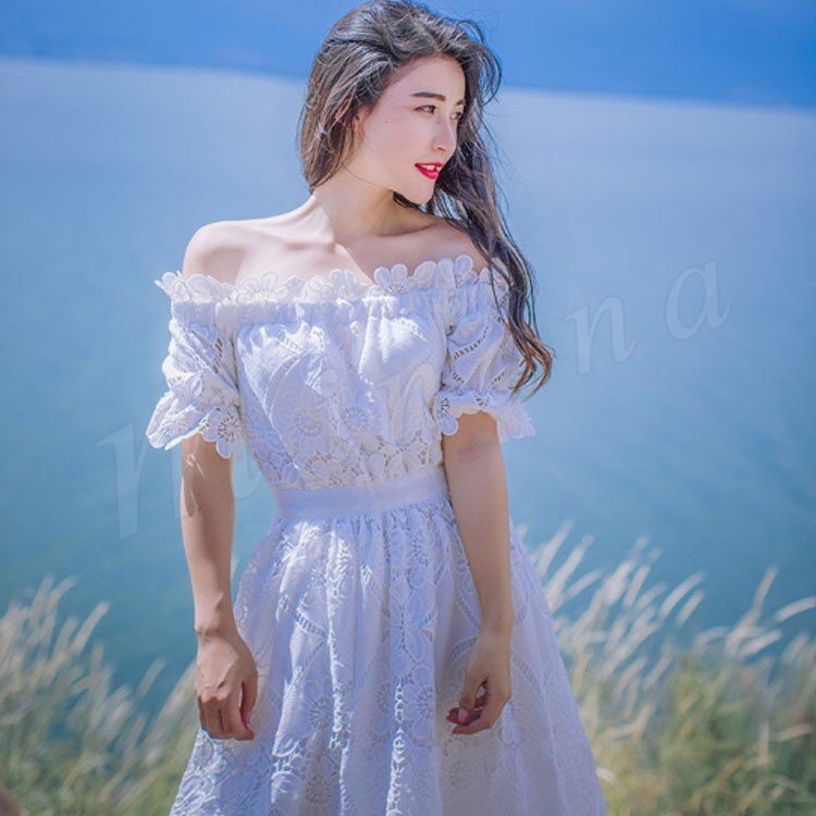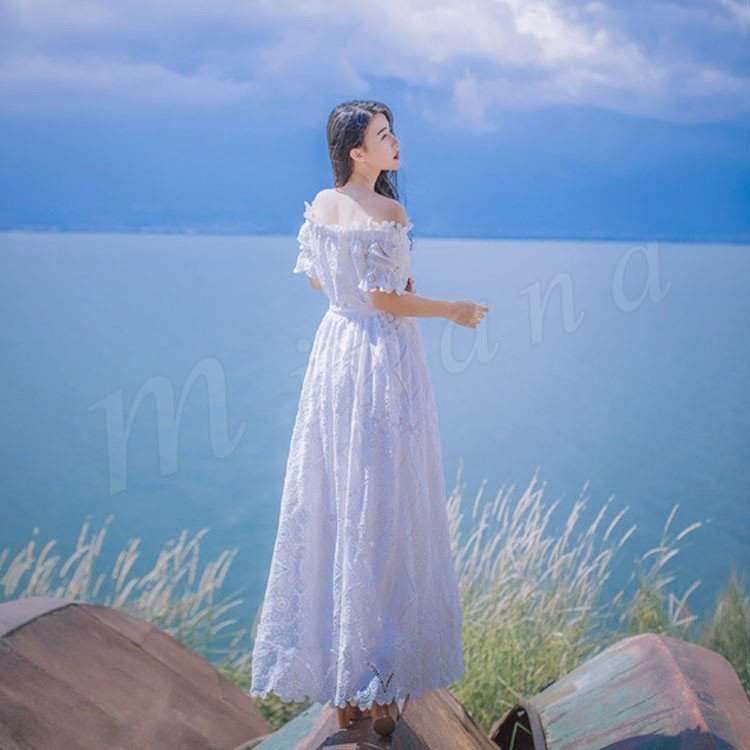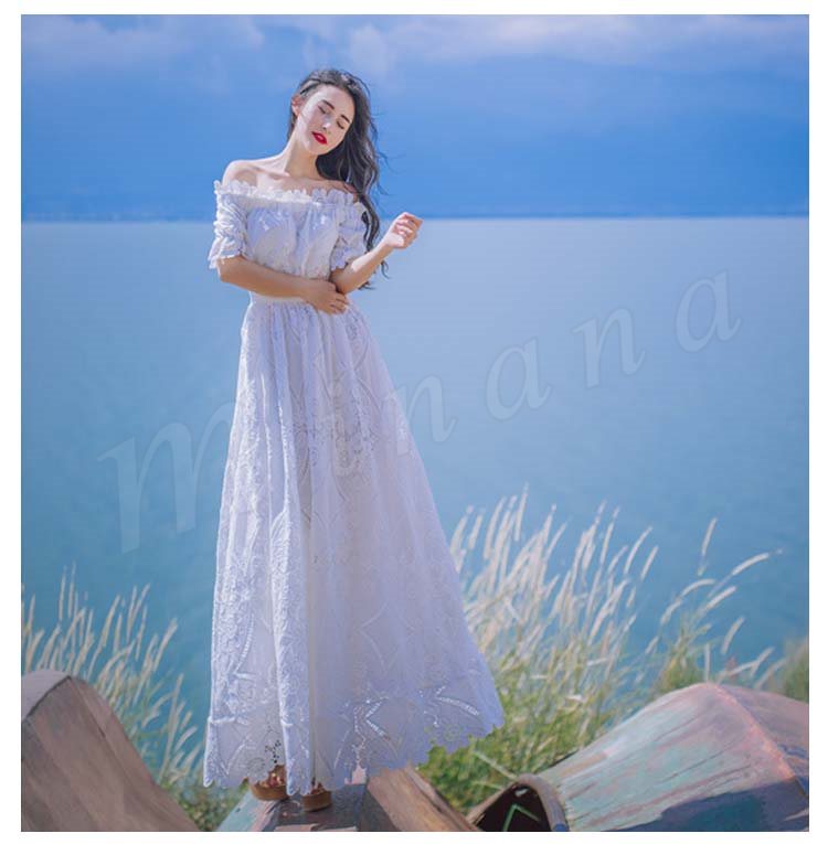 2018新作 レディースロングワンピース オフショルダー 森ガール 旅行/海/ビーチ/撮影/舞台/パーティー 透かし彫り
