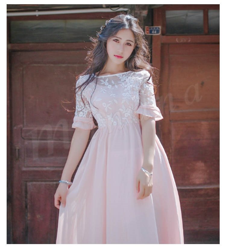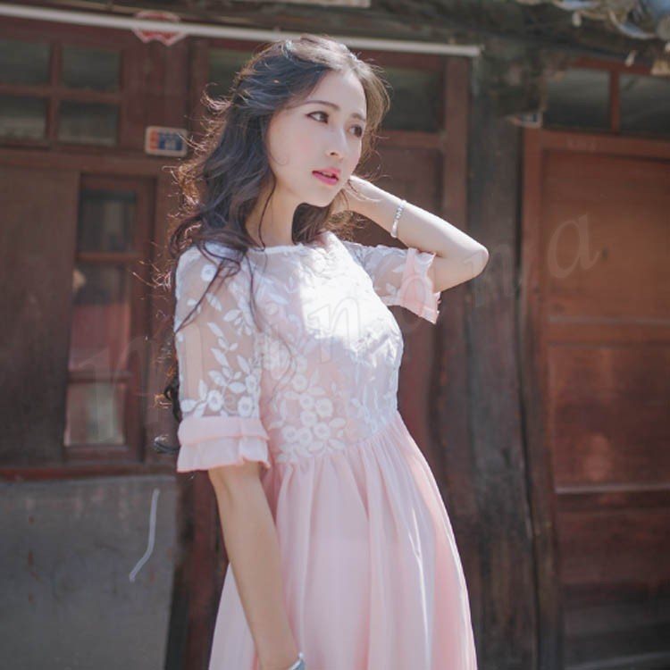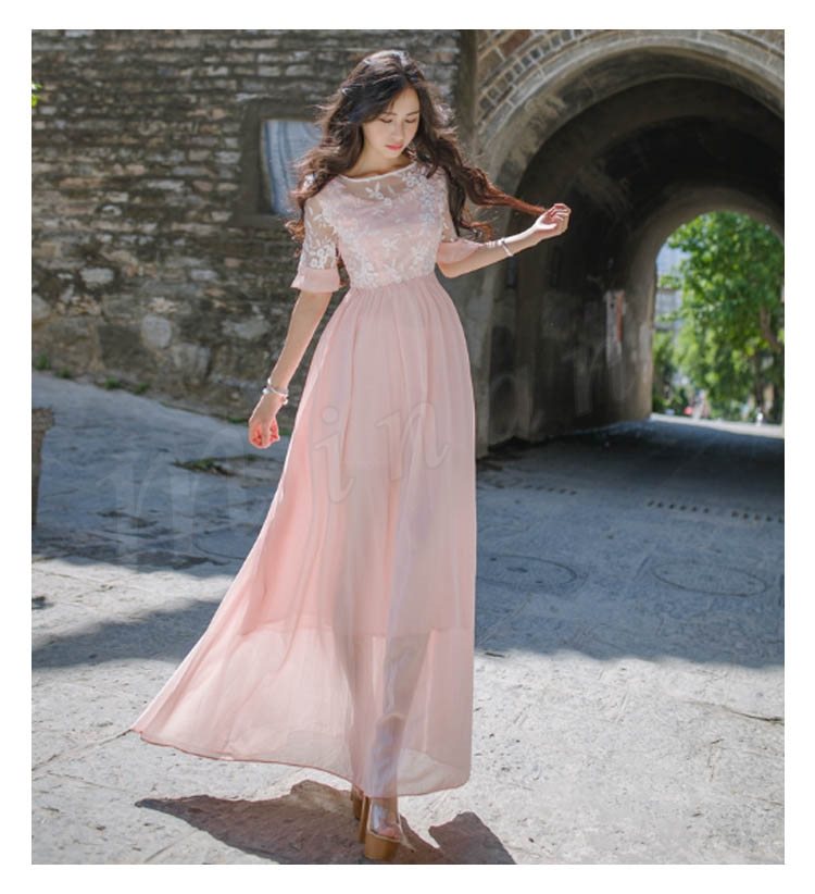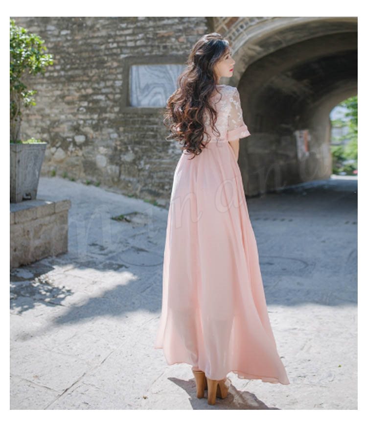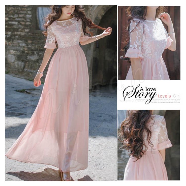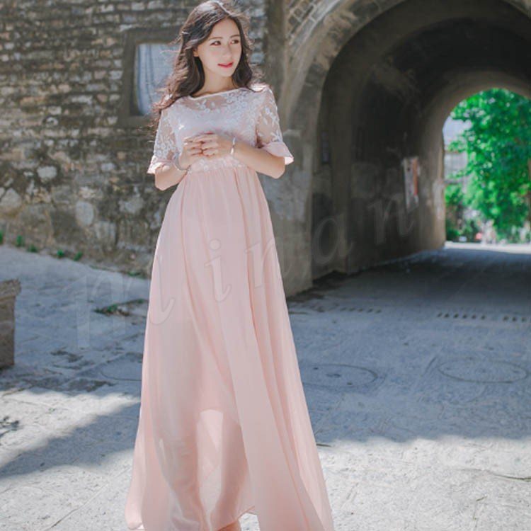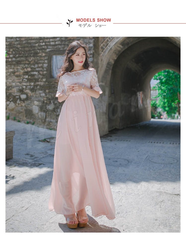 ワンピース ワンピ マキシ丈 マキシワンピース レース マキシワンピ 春 シフォン プリーツ着痩せパーティー ドレス 結婚式