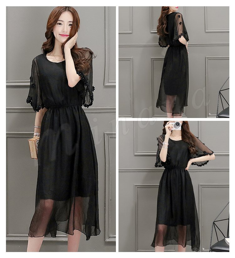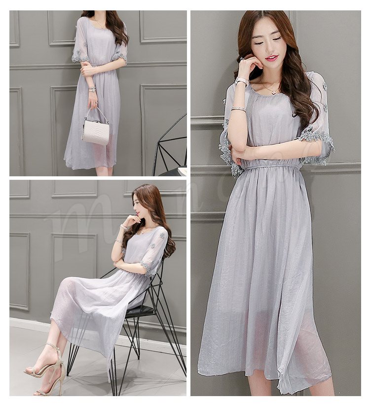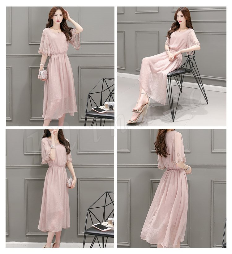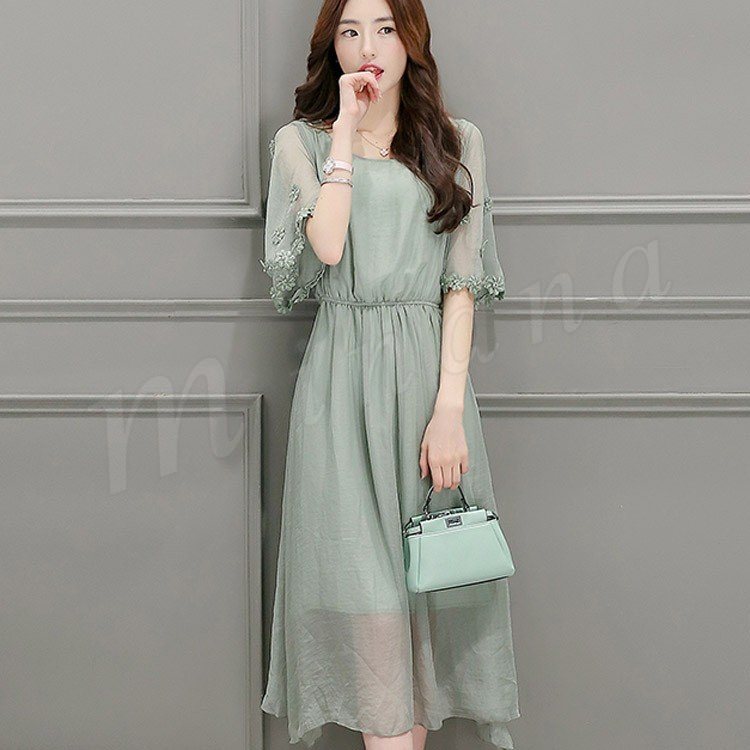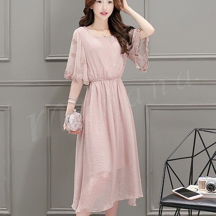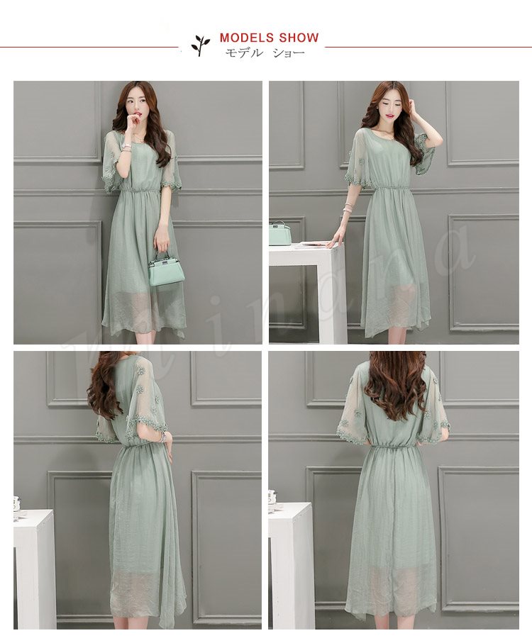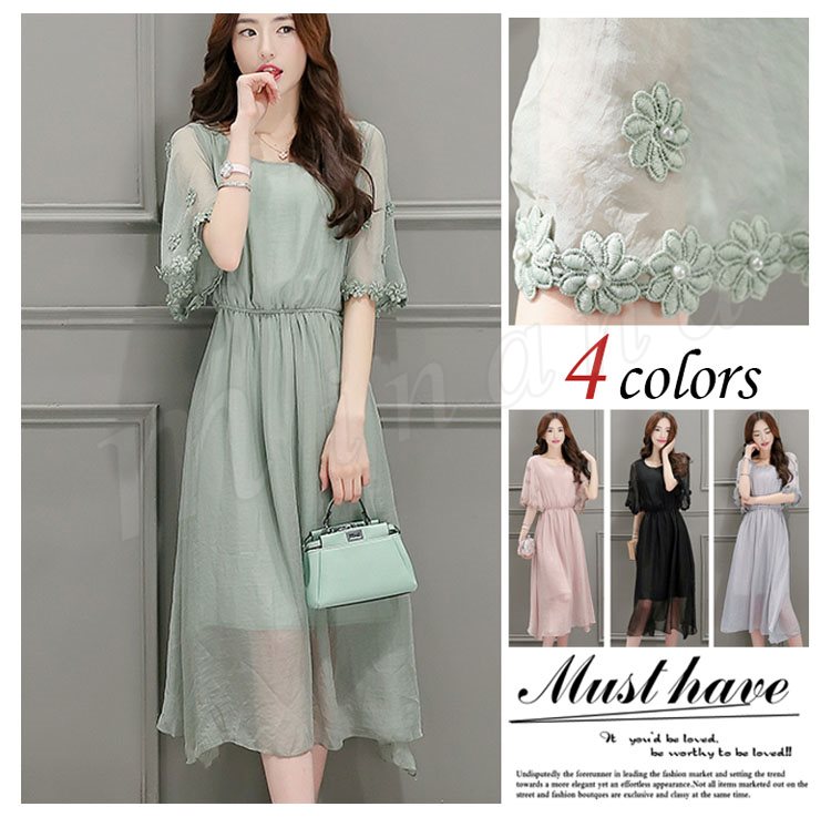 ワンピース レディース 春夏 ワンピース 膝丈 半袖 ロング丈 無地 マキシ丈ワンピース シフォン 上品 オシャレ 新作