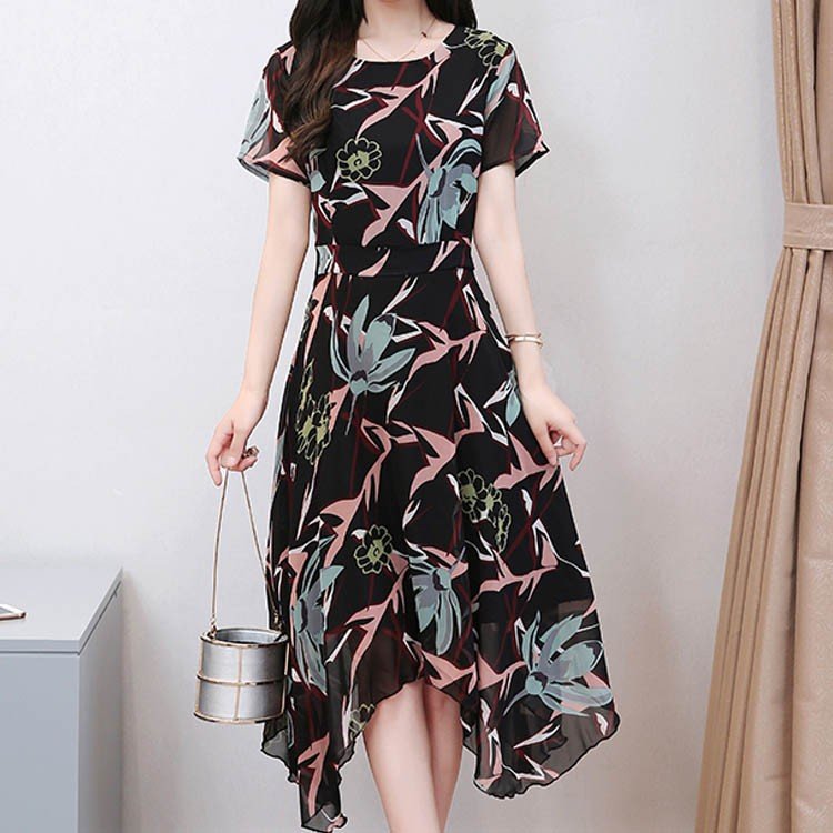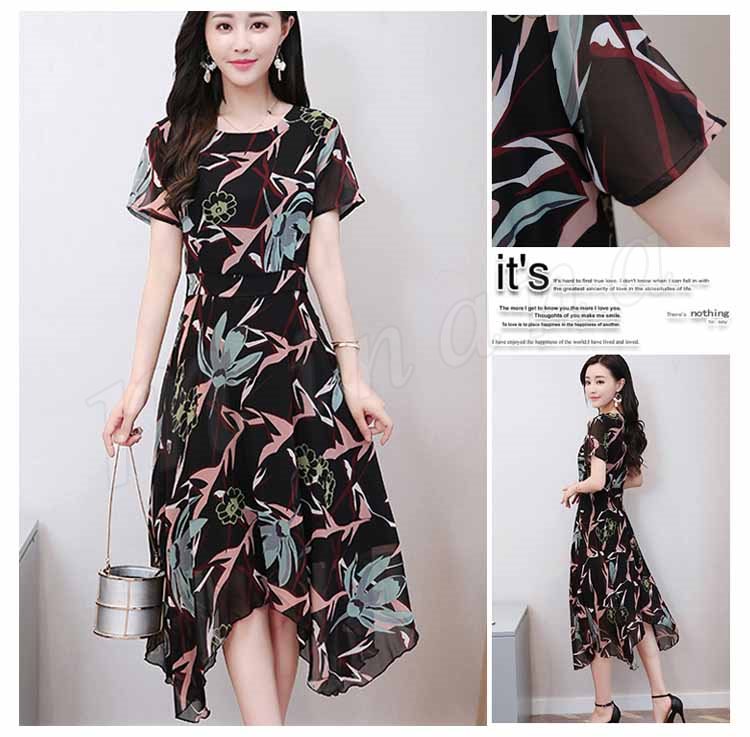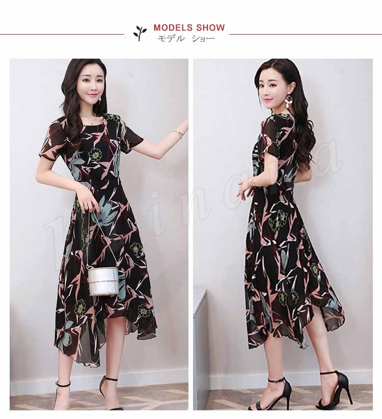 ワンピース レディース 40代 春夏 膝丈ワンピース きれいめ 半袖 花柄 シフォンワンピース 大きいサイズ 膝丈 着痩せ オシャレ 大人 上品 新作