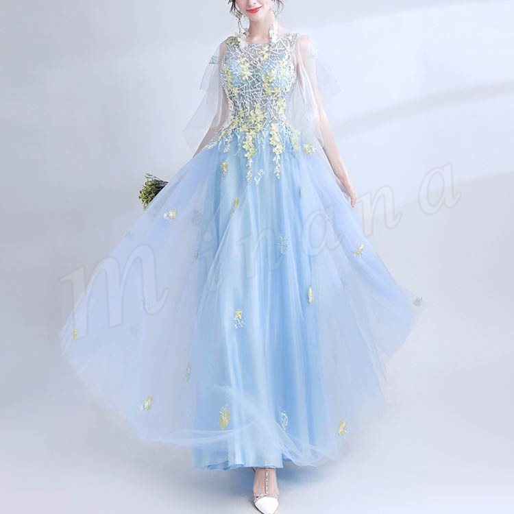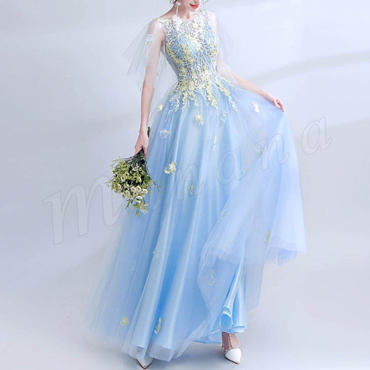ロングドレス ブルー 安い カクテルドレス カラードレス イブニングドレ ス パーティードレス スレンダー 発表会 結婚式 二次会 演奏会