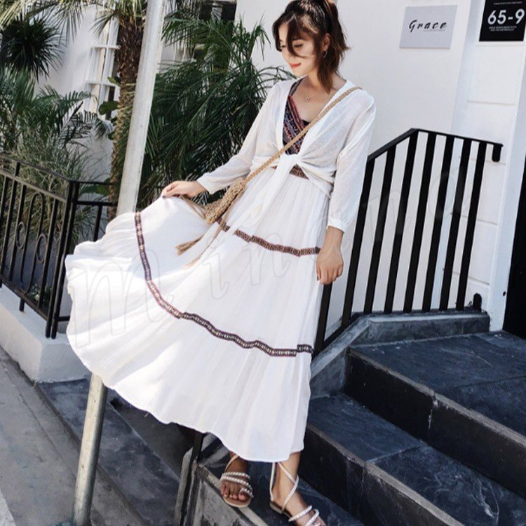 リゾートワンピース レディース 夏ワンピース ロング丈 シフォンワンピース ボヘミアン リゾートワンピ ビーチ 大人可愛い 着痩せ 海 おしゃれ