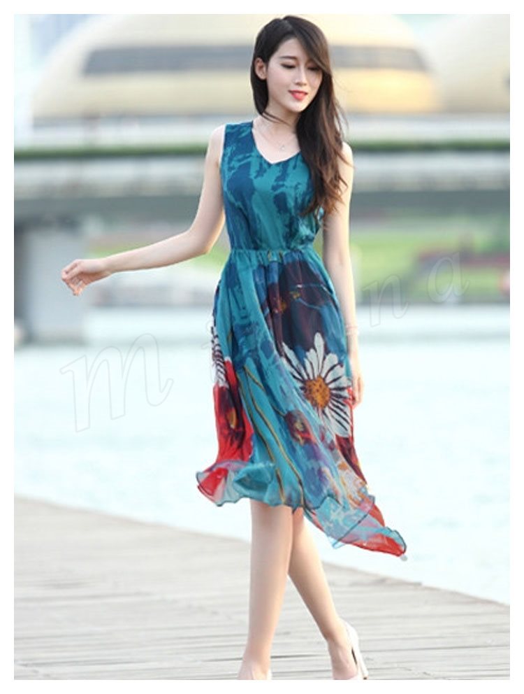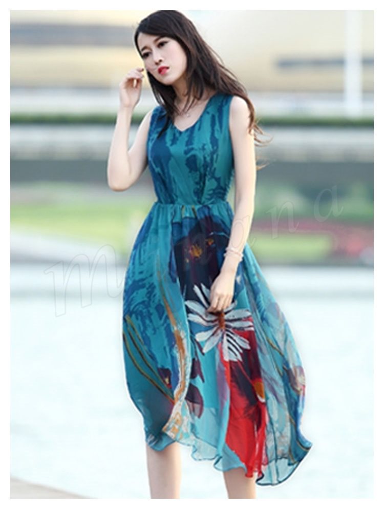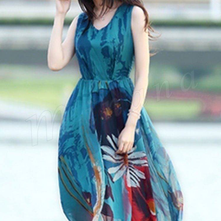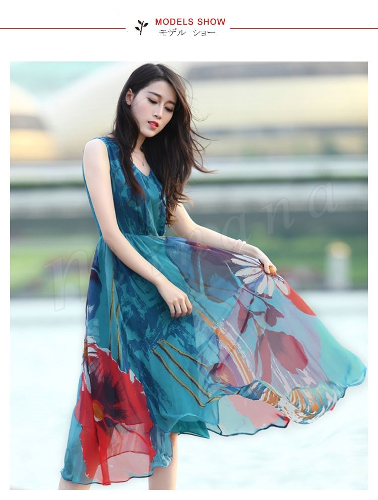 リゾートワンピース 夏 シフォンワンピース ロング丈 ワンピース 花柄 大人 可愛い ノースリーブ リゾートワンピ ビーチ 海 ボヘミアン 夏