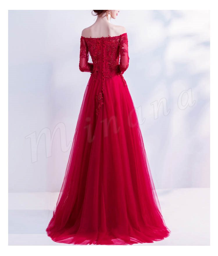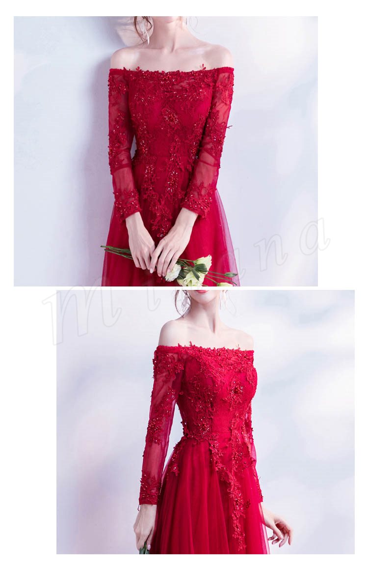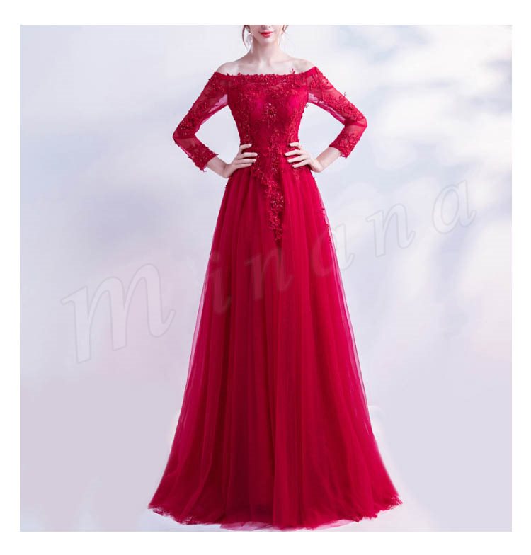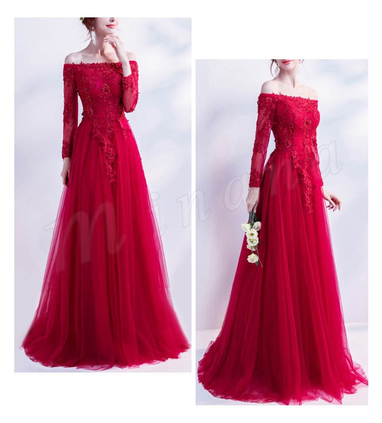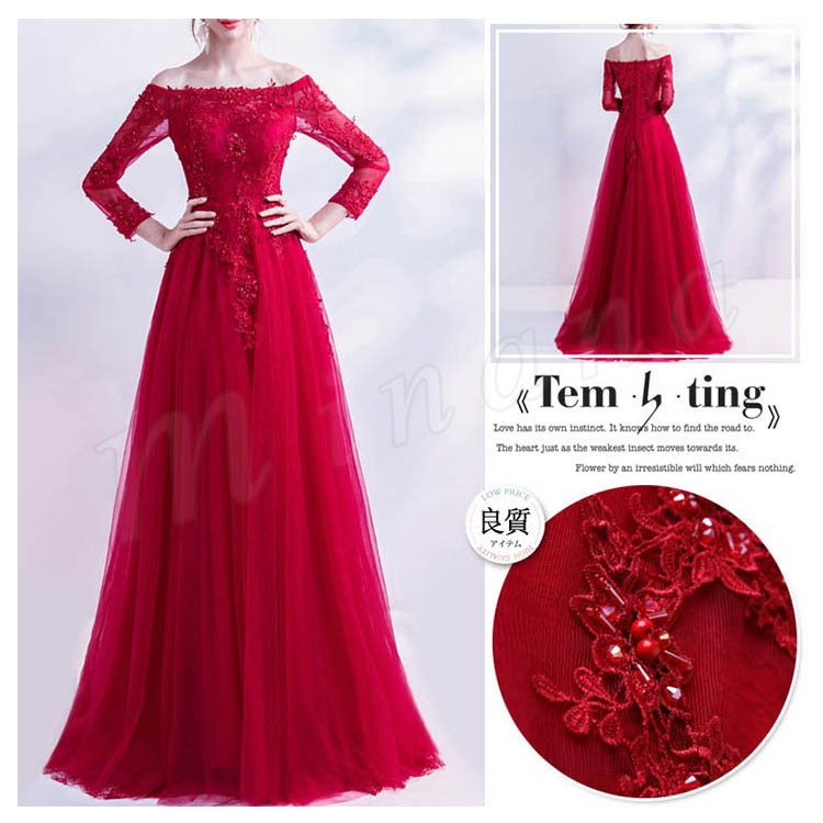 ウエディングドレス カラードレス 赤 安い 長袖 フォーマルドレス イブニングドレス ロングドレス カクテルドレス 演奏会 発表会 花嫁 二次会