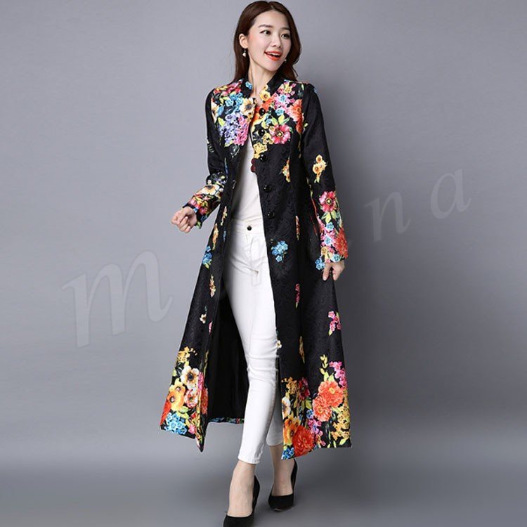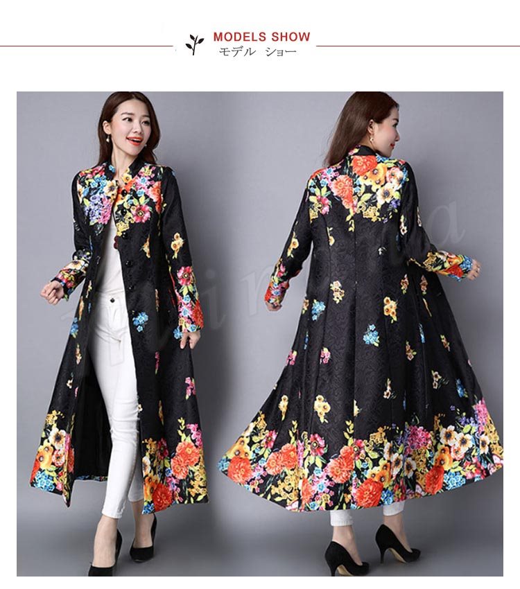 トレンチコート レディース トレンチコート ロング ジャケット ロングコート レディースコート アウター ブルゾン 花柄 高級感