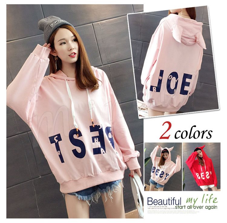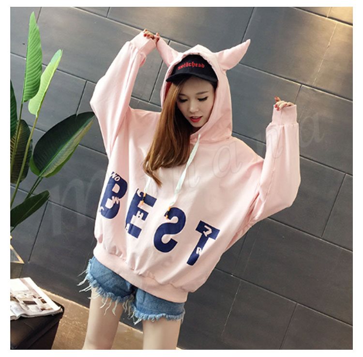 パーカー レディース 長袖 耳付き 可愛い プリント ゆったり トップス プルオーバー フード付き 帽子付き アウター おしゃれ