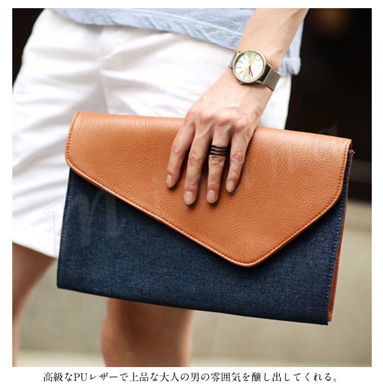 クラッチバッグ セカンドバッグ メンズ パーティー 結婚式 革 かご ワイヤー 多機能 メンズ クラッチフィット デニム セカンド クラッチ