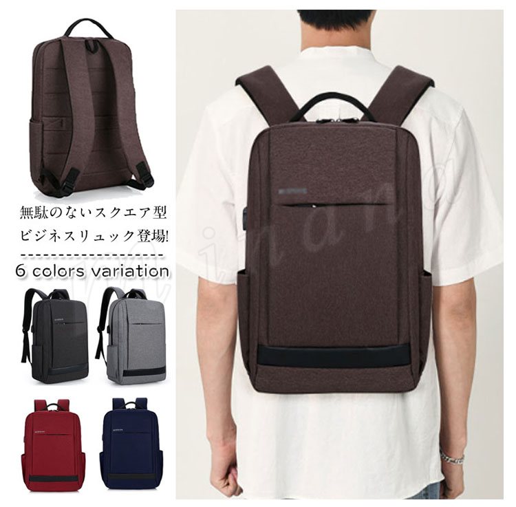 ビジネスバッグ ビジネスリュック メンズ 薄型 通勤 通学 バック リュック 軽量 防水 大容量 出張 旅行 15型PC対応 ビジネスリュック スクエ