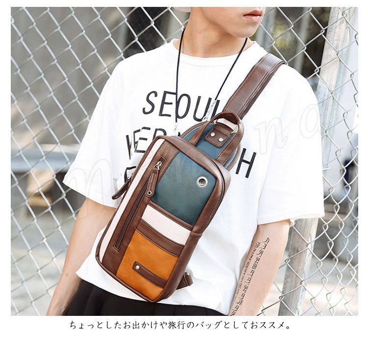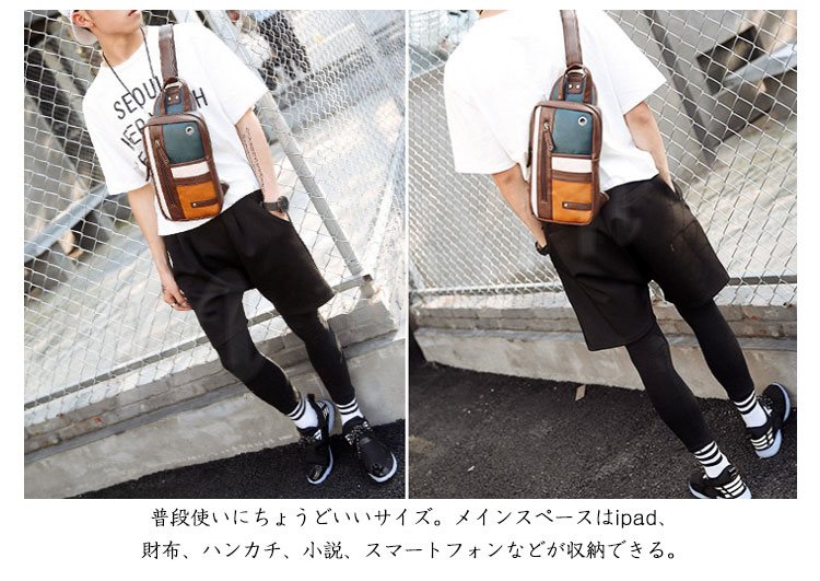 ボディバッグ ショルダーバック メンズ ワンショルダー PUレザー バッグ カバン ipad 通勤 通学 お出かけ 小物 収納 2018 春夏