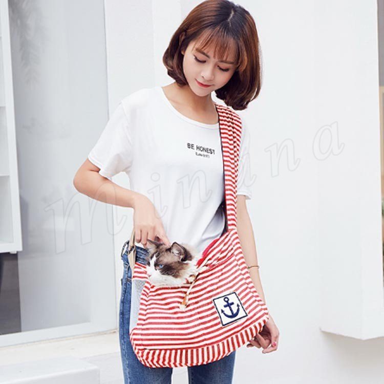 犬 キャリーバッグ ボーダー柄のショルダーキャリーバッグ リュック 抱っこ ペット用品 イヌ ペット用品