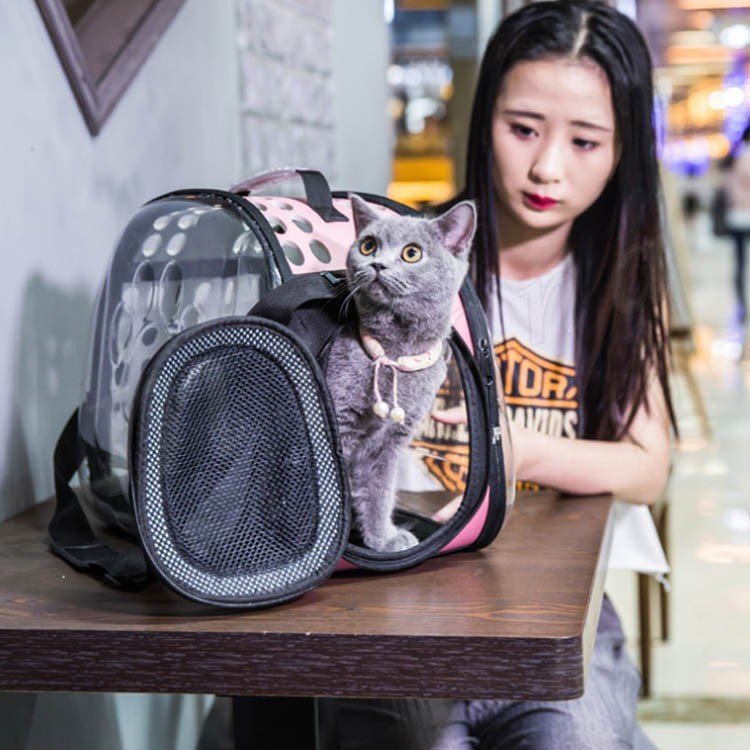 ペット バック 子犬 子猫 アウトドア お出掛け お散歩 旅行 肩掛け折り畳み ケージ 犬猫 肉球柄 透明 組立式 移動用 簡易ケージ 透气性