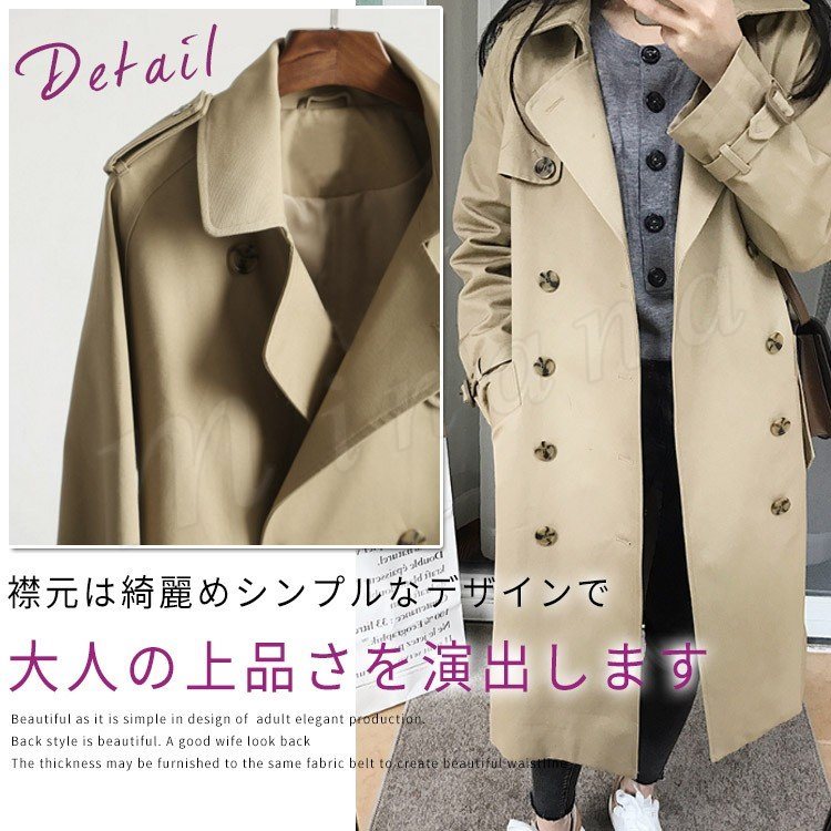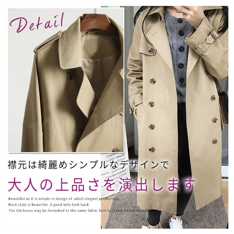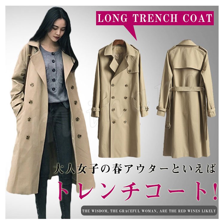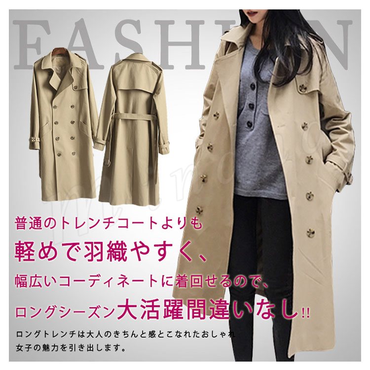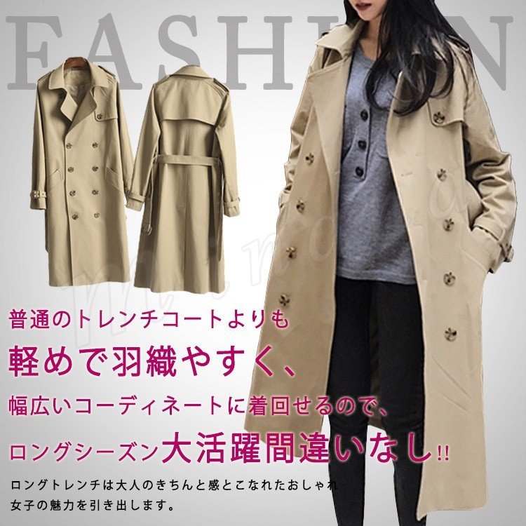 | 大人女子の春アウターといえばトレンチコート! デイリーに使いたくなること間違いなしの嬉しいアイテムです。 ロングトレンチは大人のきちんと感とこなれたおしゃれ女子の魅力を引き出します。 普通のトレンチコートよりも軽めで羽織やすく、幅広いコーディネートに着回せるので、ロングシーズ ン大活躍間違いなし!! | |