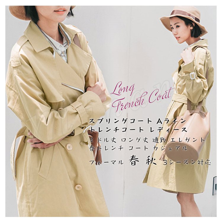 スプリングコート Aライン トレンチコート レディース ミドル丈 ロング丈 通勤 エレガント 春トレンチ コート カジュアル フォーマル 春