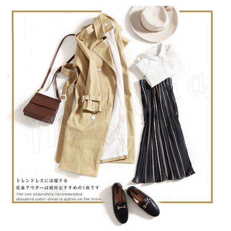 | シンプルな中にもトラッドなムード感を感じさせるトレンチコートです。 スカートやパンツとのバランスが取りやすく、全体的にコンパクトにまとまるので、理想の美バランス が完成! トレンドレスに活躍する定番アウターは絶対おすすめの1枚です。 | |