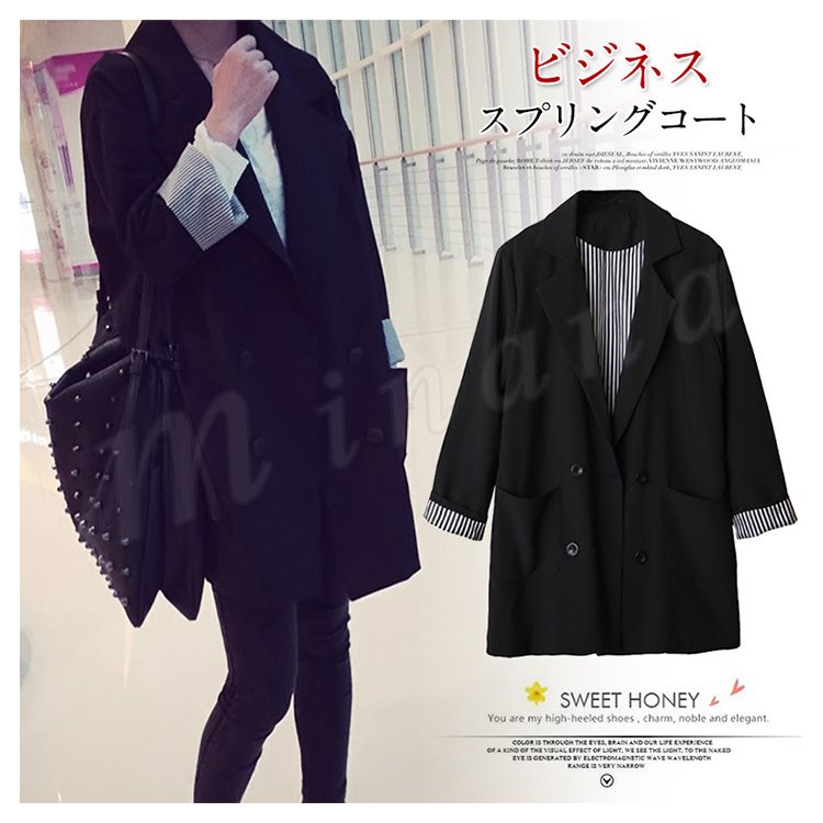 2018春新作/カジュアルスーツ/スプリングコート/レディース/長袖/ゆったり/ロング丈/テーラードジャケット/ビジネス/オフィス/通勤/アウター