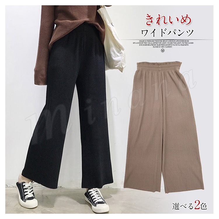 春秋新作/ガウチョパンツ/レディース/ワイドパンツ/九分丈/スカンツ/ウエストゴム/ファッション/ビジネス/カジュアル/きれいめ/おしゃれ/春秋冬