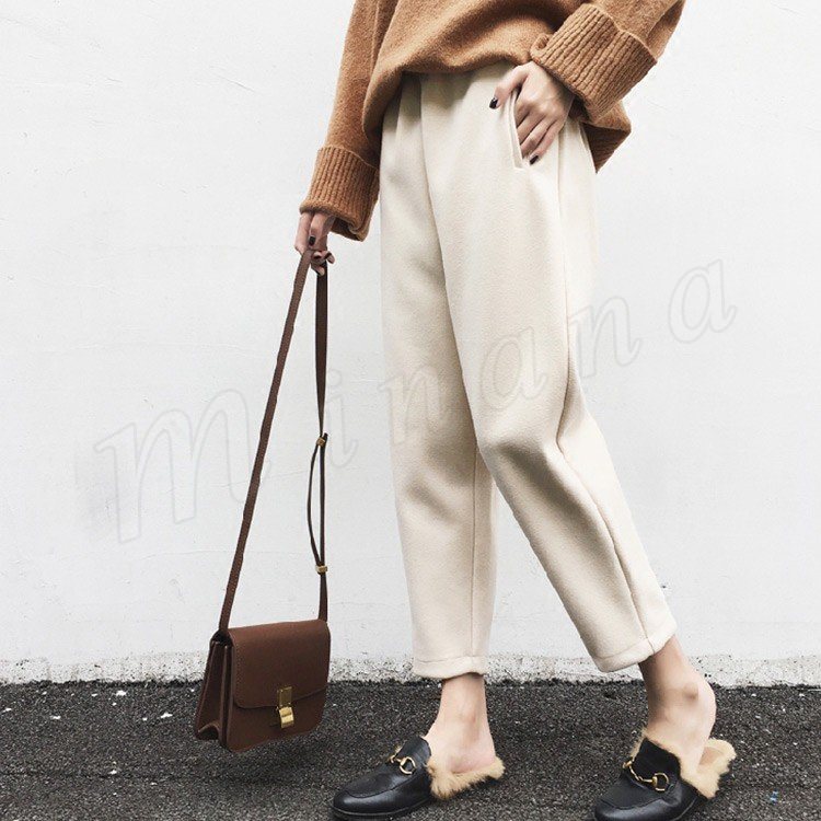 春秋新作/サルエルパンツ/レディース/ワイドパンツ/テーパードパンツ/九分丈/ハロンパンツ/厚手/ビジネス/カジュアル/通勤/ガウチョ/春秋冬/お