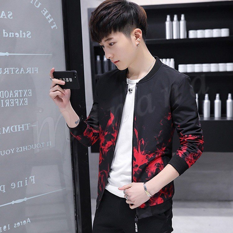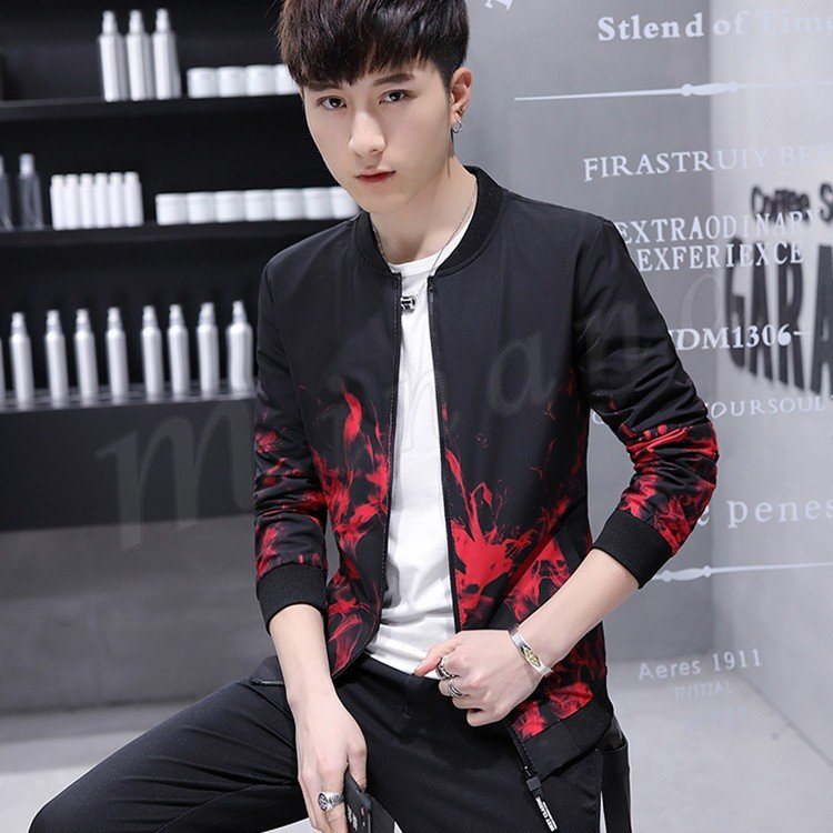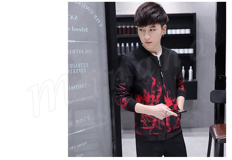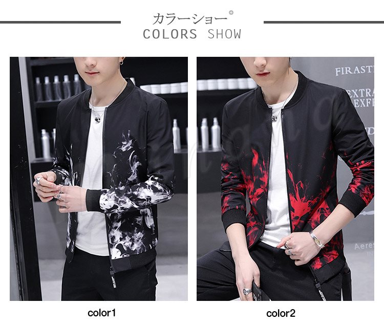 2018春新作/スタジャン/ジャケット/メンズ/野球服/長袖/スプリングコート/炎/薄手/スリム/カジュアル/春秋/トップス/アウター/ファッショ