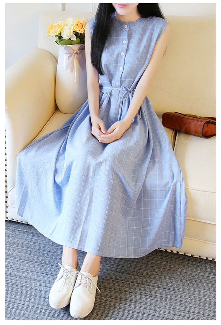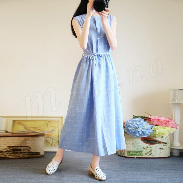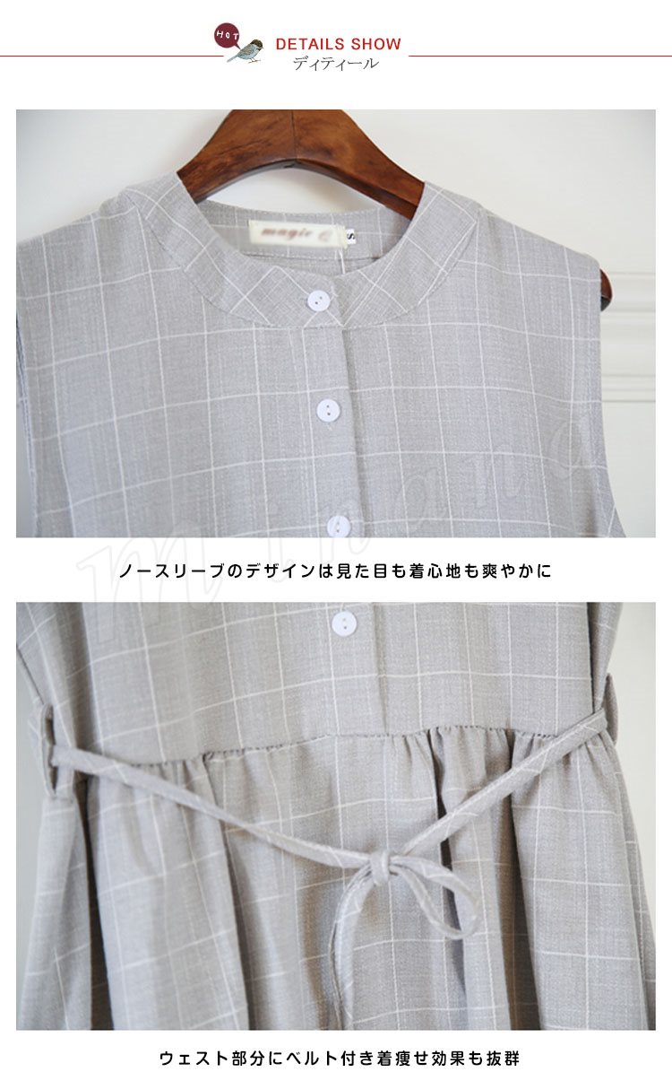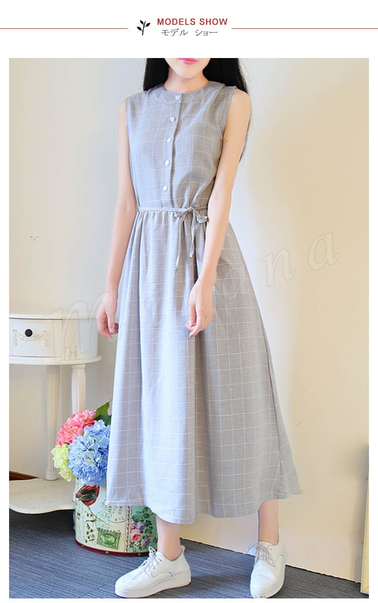 夏ワンピース/ギンガムチェックワンピース/マキシワンピース/ロングワンピース/レディース/綿麻ワンピース/きれいめ/マキシ丈/ロング丈/ゆった