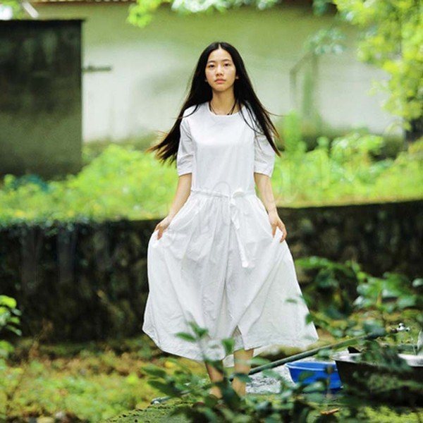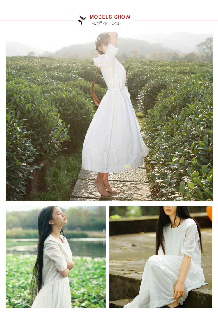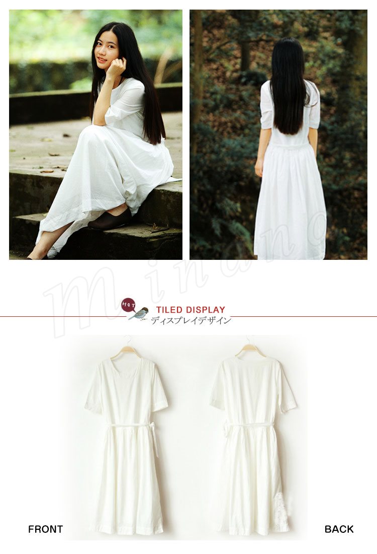 夏ワンピース 綿麻 ドレス 半袖ワンピース チュニック リネンワンピース 森ガール ロング丈 ベルト付き マキシ丈 大きいサイズ 無地 シン