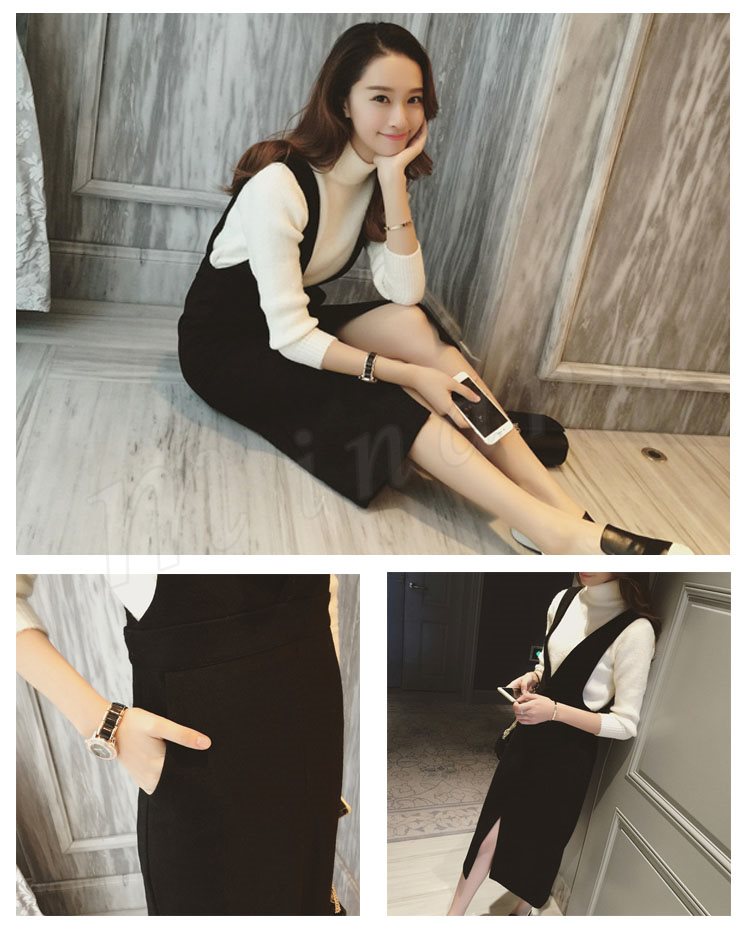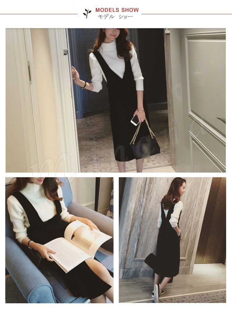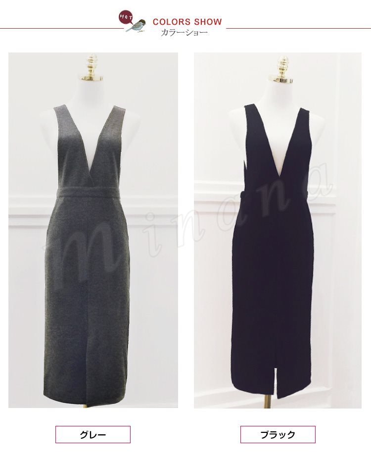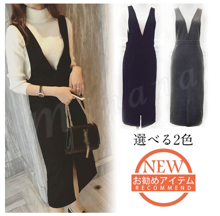 送料無料タック サロペット ワンピース ミディアム スカート Vネック スリット入り オールインワン メルトン サロペットワンピース レディース キャ