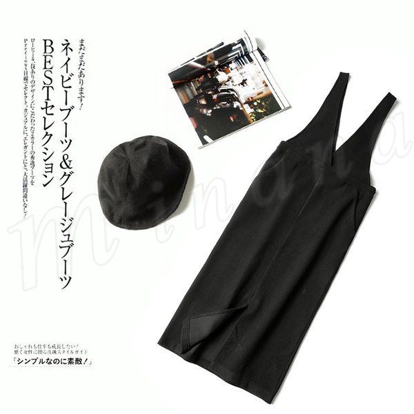 タック サロペット ワンピース ミディアム スカート Vネック スリット入り オールインワン メルトン サロペットワンピース レディース キ